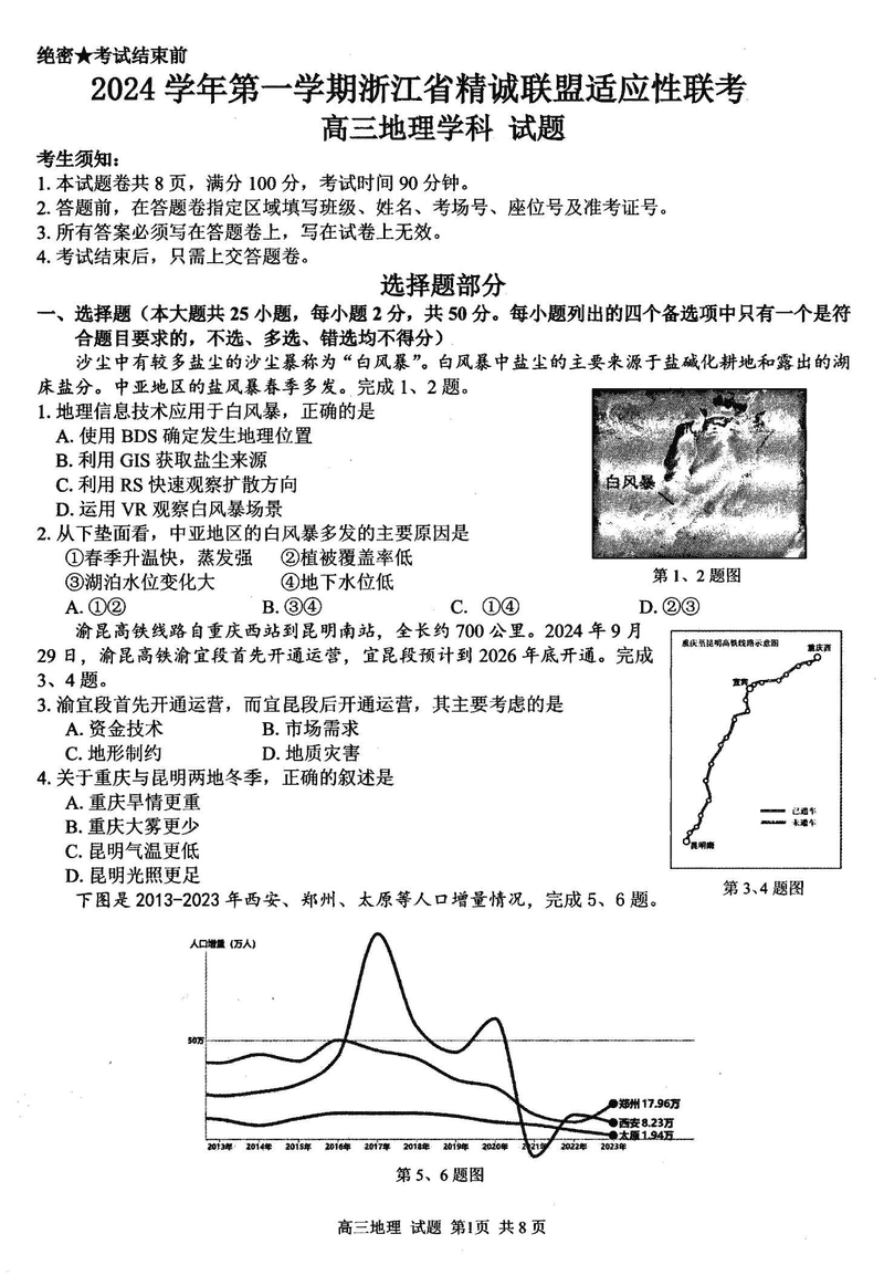 浙江省精诚联盟2024学年12月高三上学期适应性联考地理考试已于近日开考,为方便考生考后及时查看考试情况,查漏补缺、弥补不足,本文整理了试题答案解析相关信息!