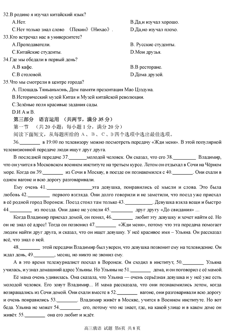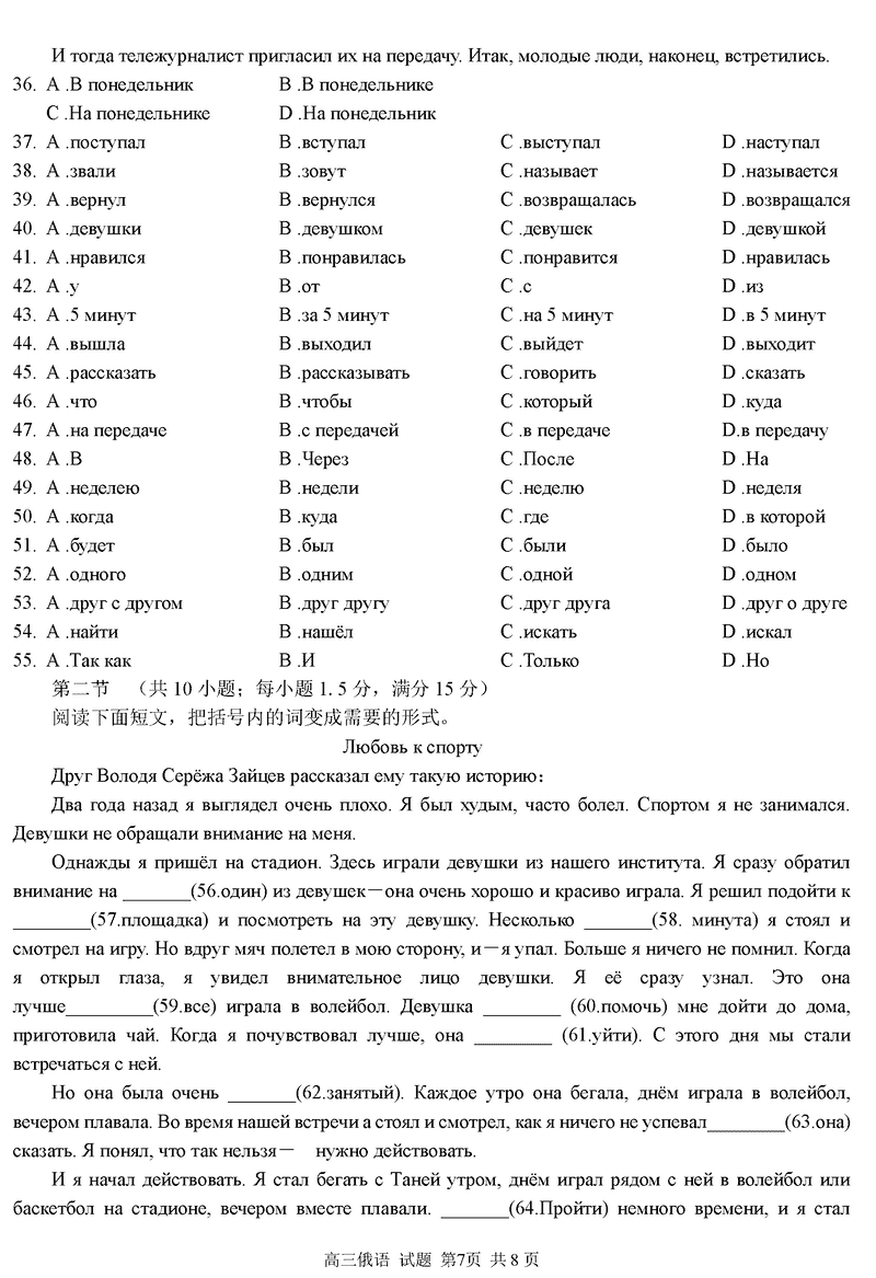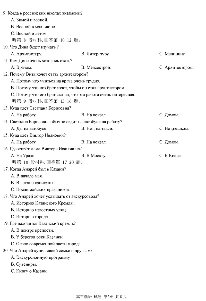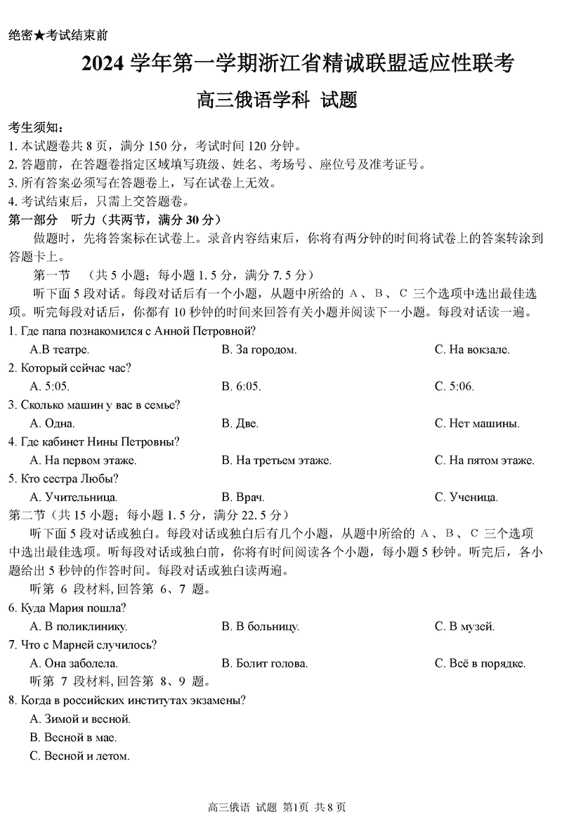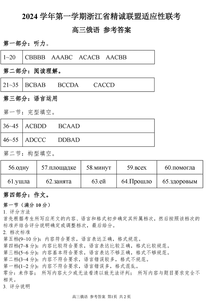 浙江省精诚联盟2024学年12月高三上学期适应性联考俄语考试已于近日开考,为方便考生考后及时查看考试情况,查漏补缺、弥补不足,本文整理了试题答案解析相关信息!