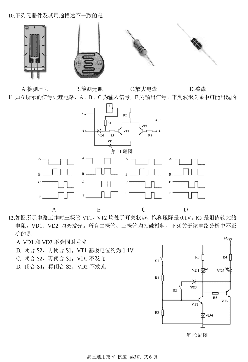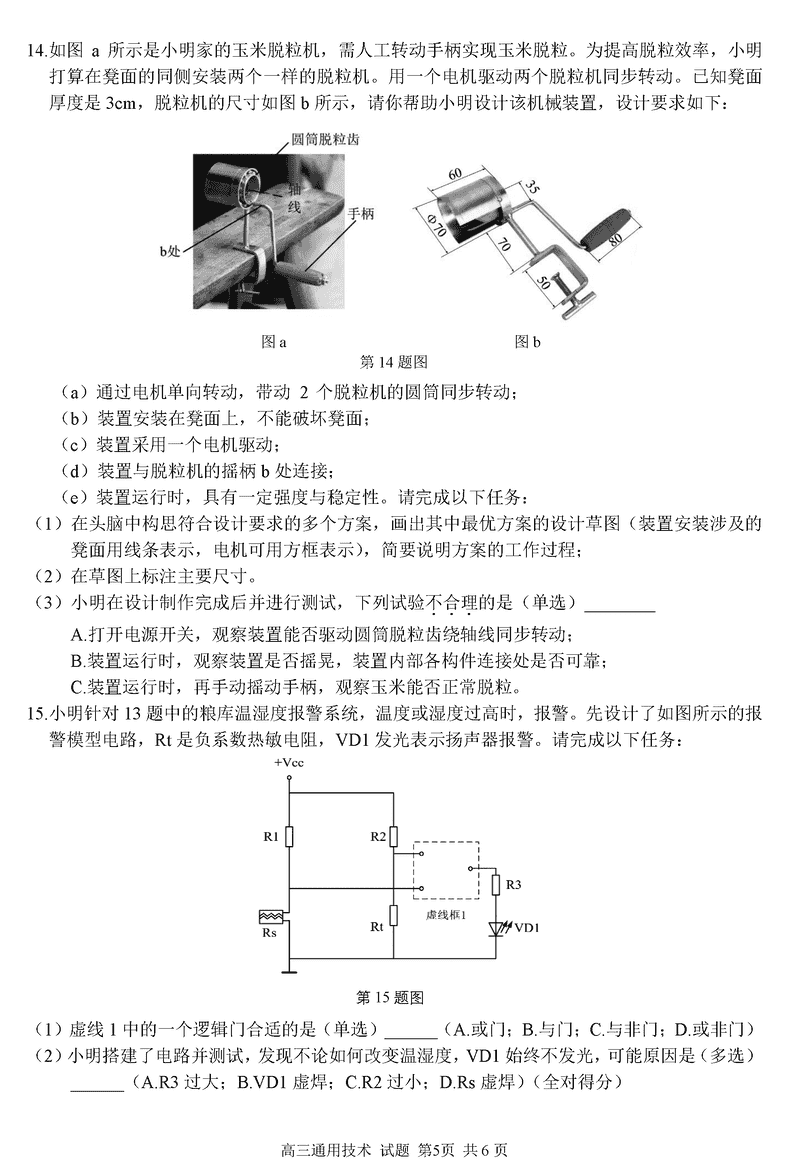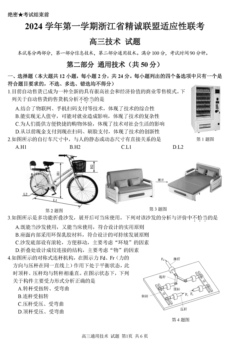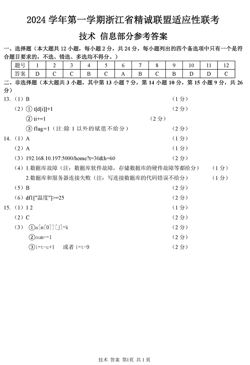 浙江精诚联盟2024学年12月高三上联考技术试题及答案