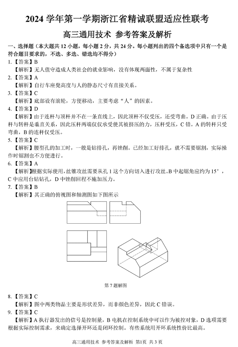 浙江省精诚联盟2024学年12月高三上学期适应性联考技术考试已于近日开考,为方便考生考后及时查看考试情况,查漏补缺、弥补不足,本文整理了试题答案解析相关信息!