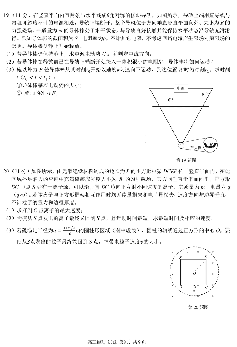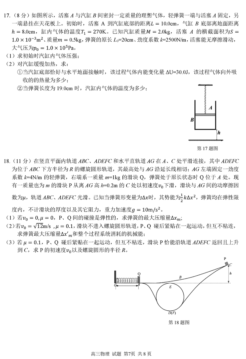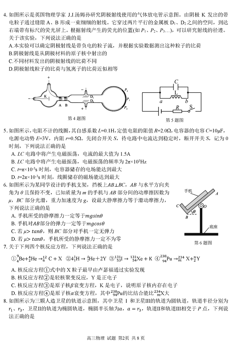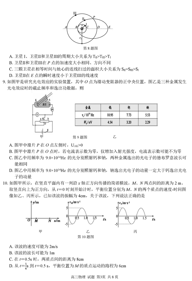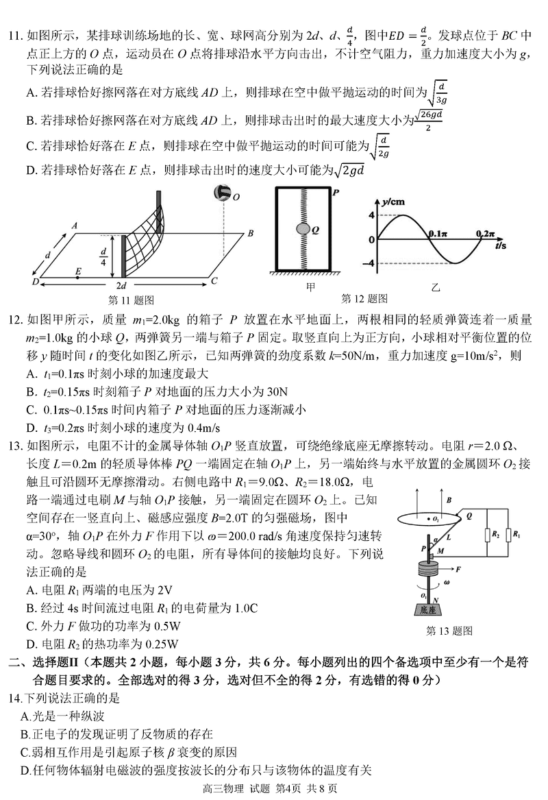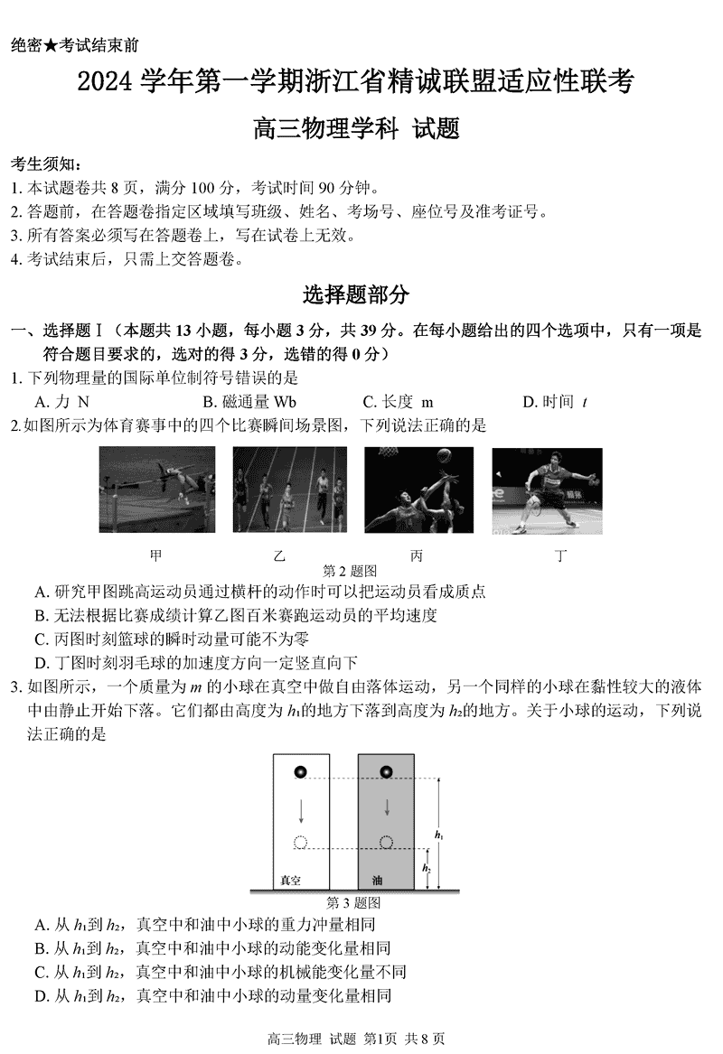 浙江精诚联盟2024学年12月高三上联考物理试题及答案