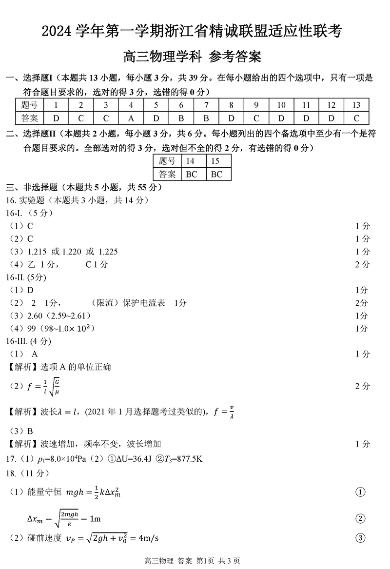 浙江省精诚联盟2024学年12月高三上学期适应性联考物理考试已于近日开考,为方便考生考后及时查看考试情况,查漏补缺、弥补不足,本文整理了试题答案解析相关信息!