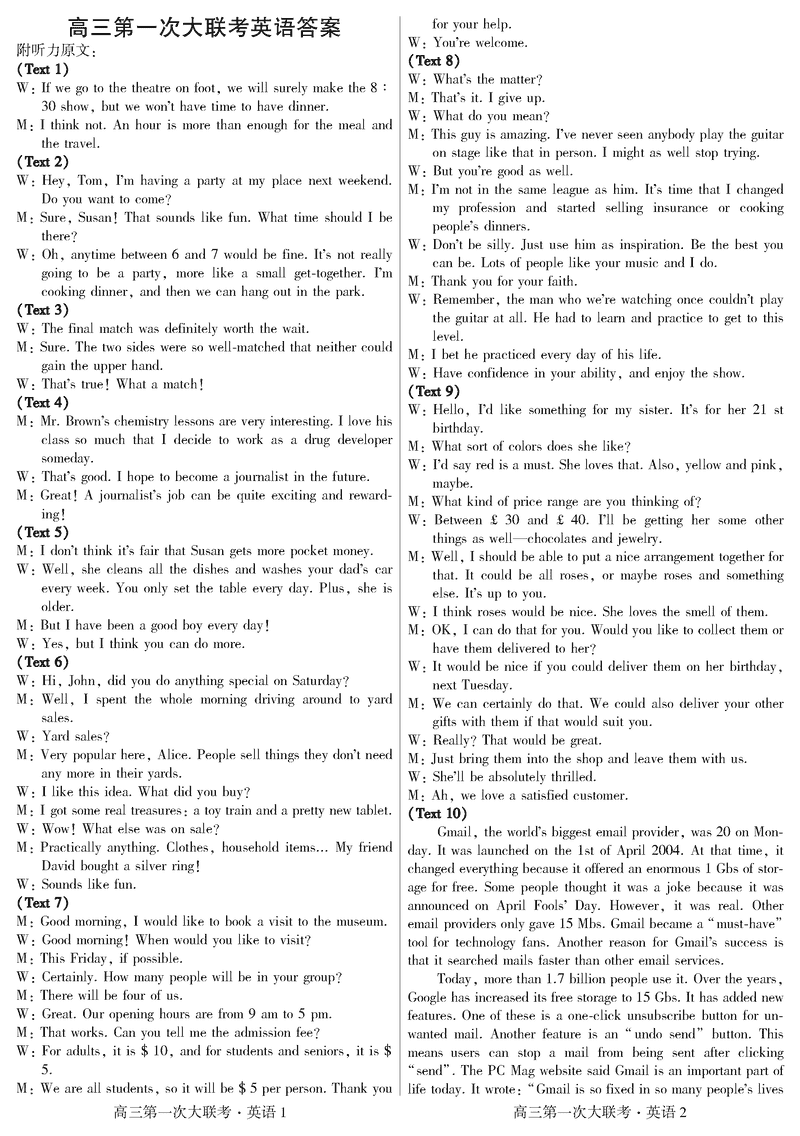 邯郸部分学校2025届高三第一次大联考模拟预测英语考试已于近日开考,为方便考生考后及时查看考试情况,查漏补缺、弥补不足,本文整理了试题答案解析相关信息!