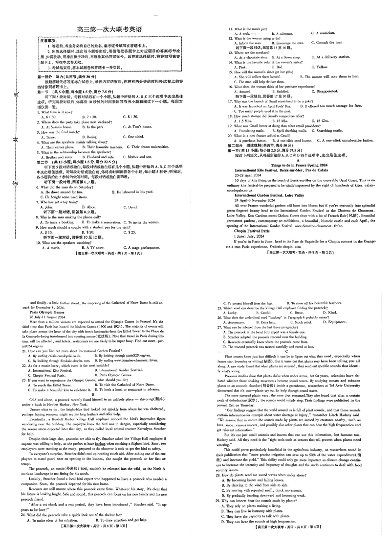 邯郸部分学校2025届高三第一次大联考模拟预测英语试题及答案