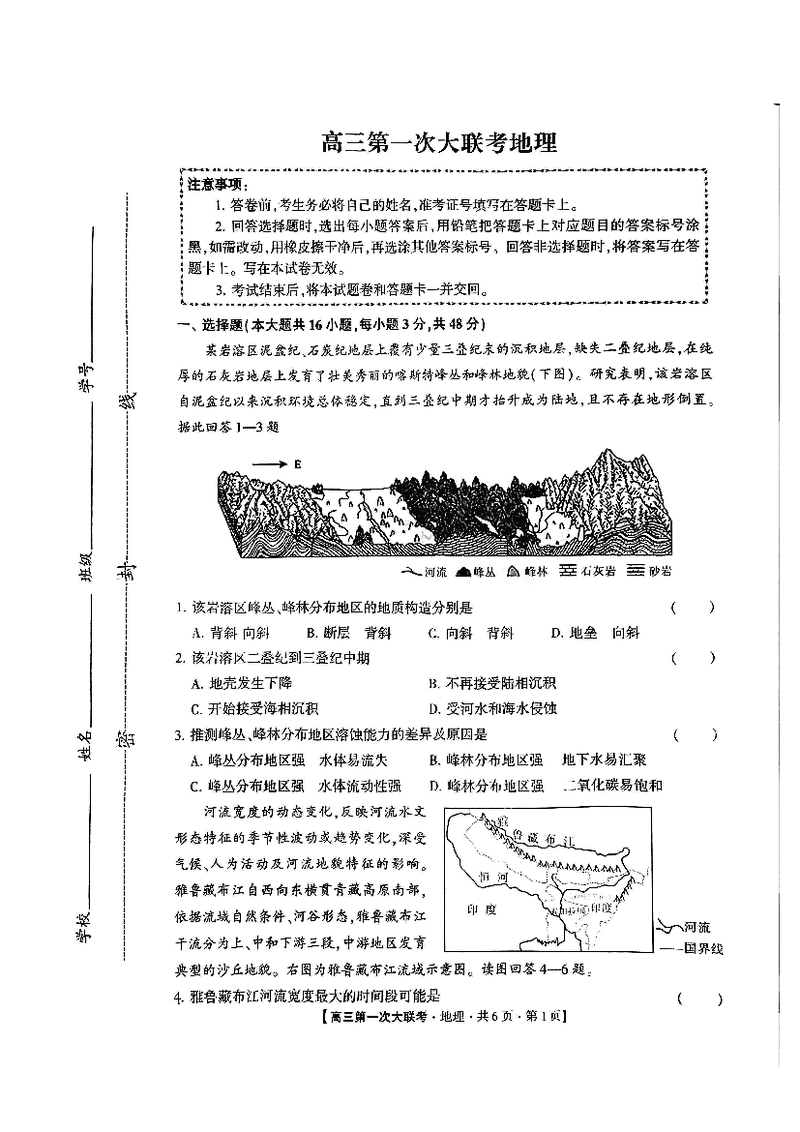 邯郸部分学校2025届高三第一次大联考模拟预测地理试题及答案