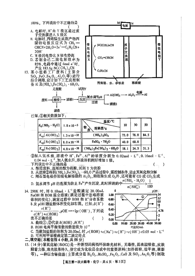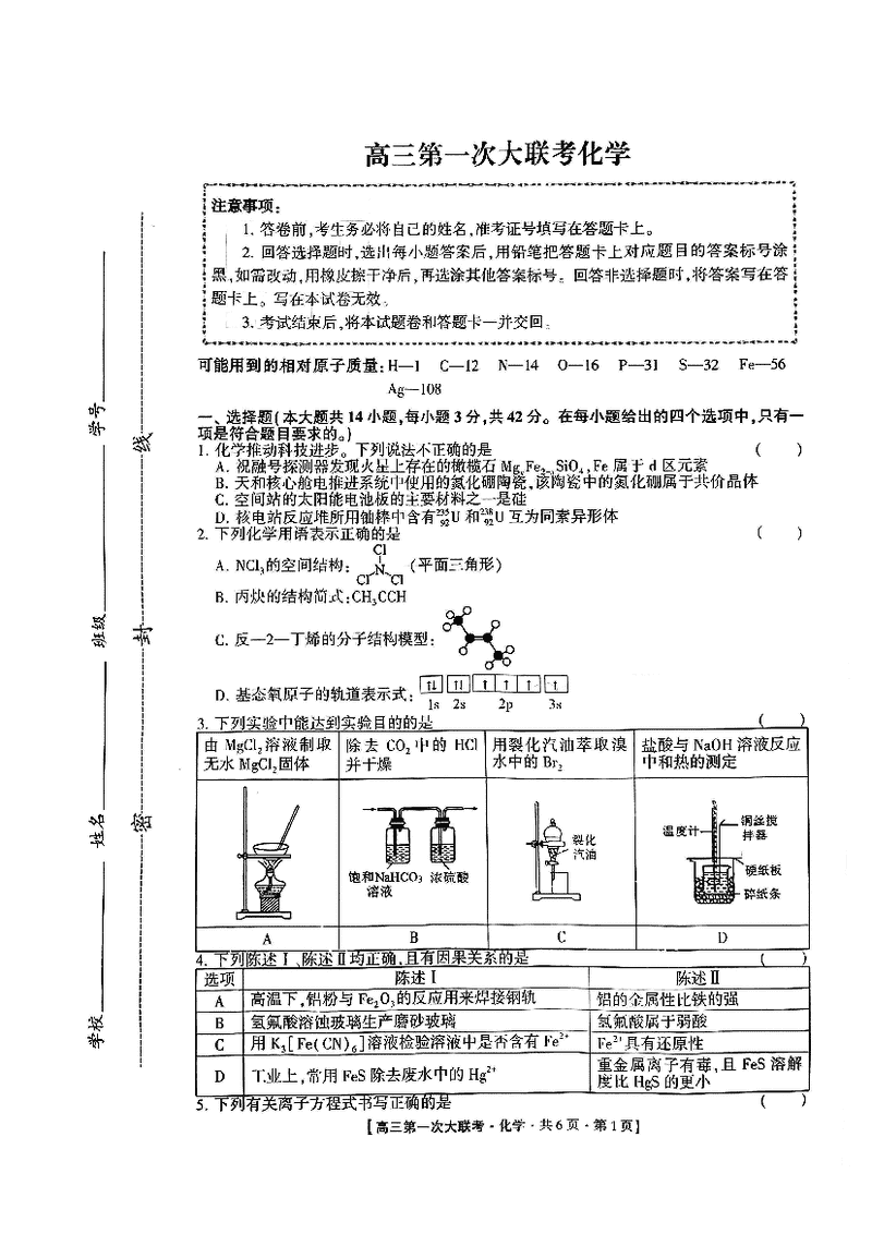 邯郸部分学校2025届高三第一次大联考模拟预测化学试题及答案