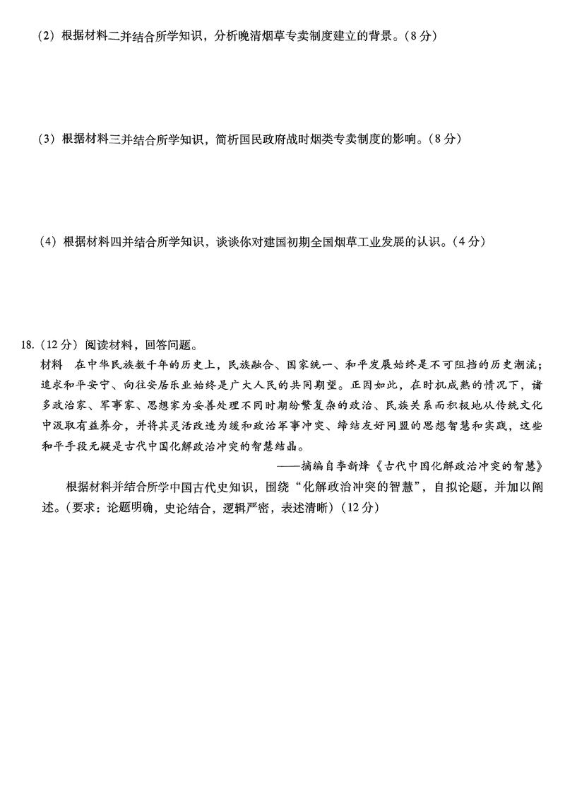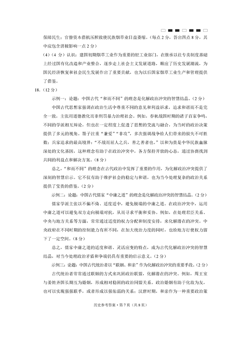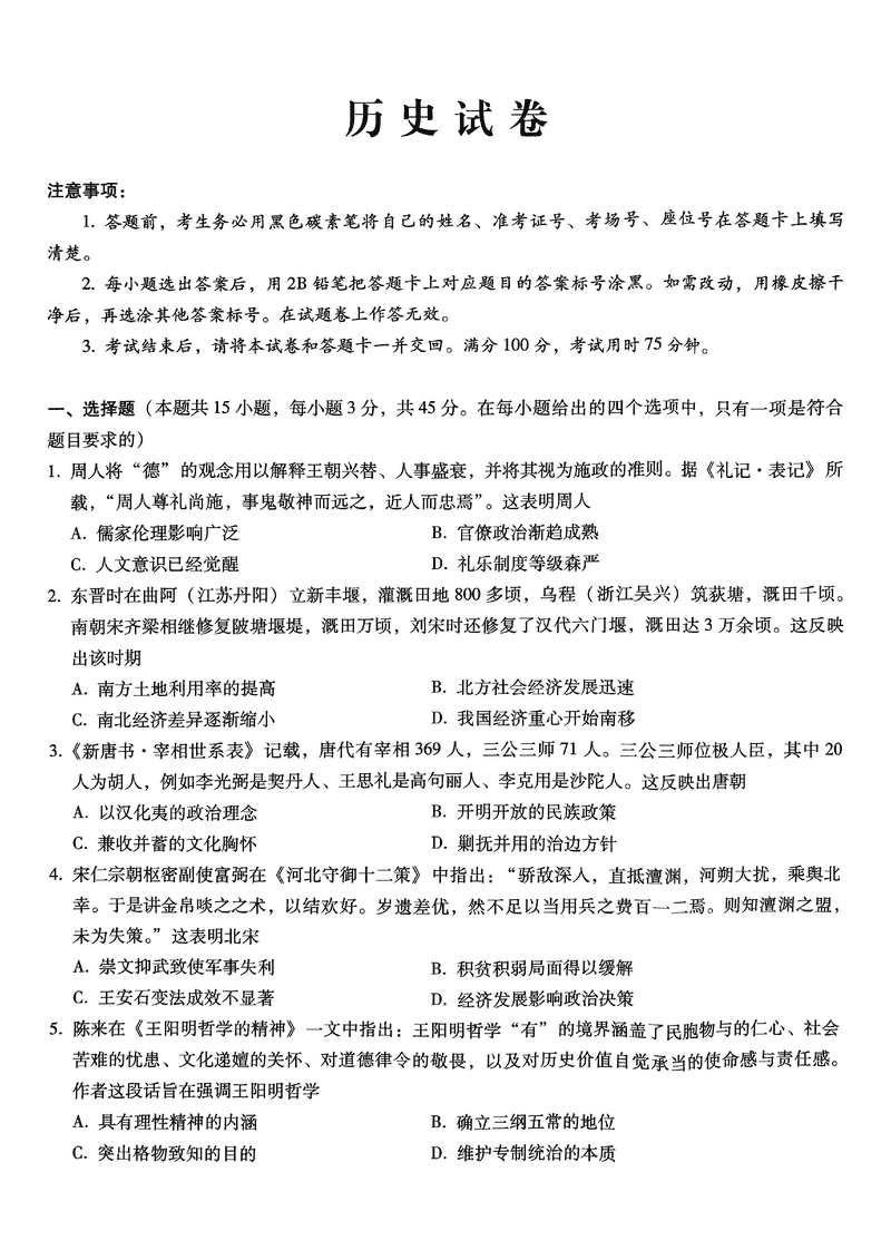 重庆巴蜀中学2025届高三12月适应性月考(四)历史试题及答案