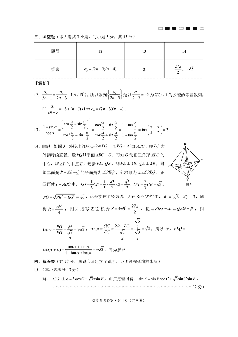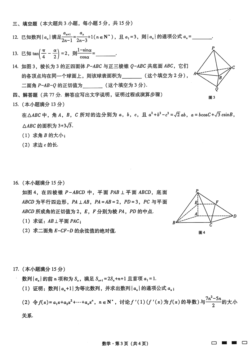 重庆巴蜀中学2025届高三12月适应性月考(四)数学试题及答案