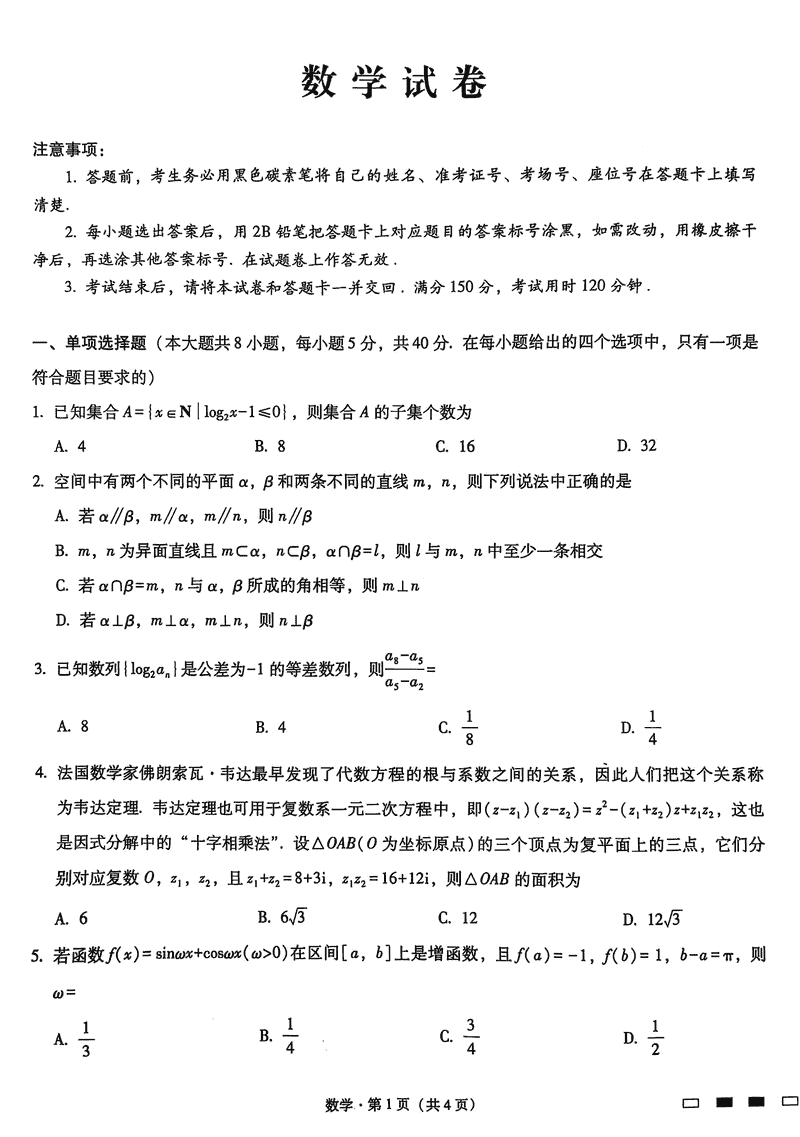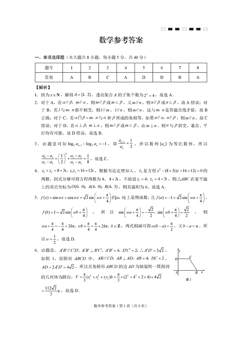 数学试题及答案解析