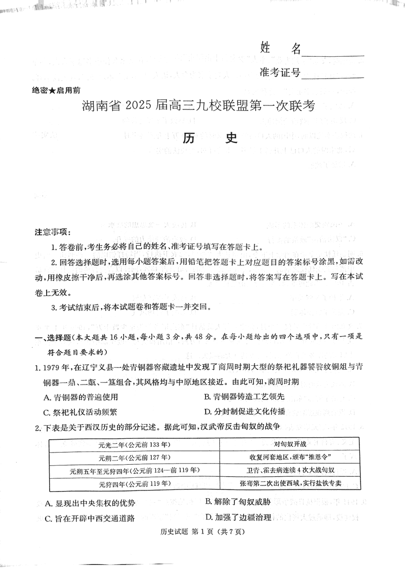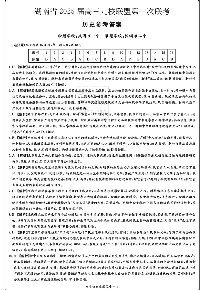 湖南九校联盟2025届高三上第一次联考历史试题及答案 时间:2024-12-17 05:40 湖南 文综试题 湖南九校联盟2025届高三上第一次联考历史考试已于近日开考,为方便考生考后及时查看考试情况,查漏补缺、弥补不足,本文整理了试题答案解析相关信息! 汇总:湖南九校联盟2025届高三上第一次联考试题及答案汇总 历史试题及答案解析