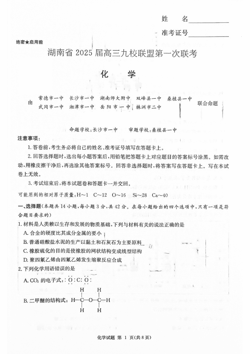 湖南九校联盟2025届高三上第一次联考化学试题及答案 时间:2024-12-17 05:41 湖南 理综试题 湖南九校联盟2025届高三上第一次联考化学考试已于近日开考,为方便考生考后及时查看考试情况,查漏补缺、弥补不足,本文整理了试题答案解析相关信息! 汇总:湖南九校联盟2025届高三上第一次联考试题及答案汇总 化学试题及答案解析