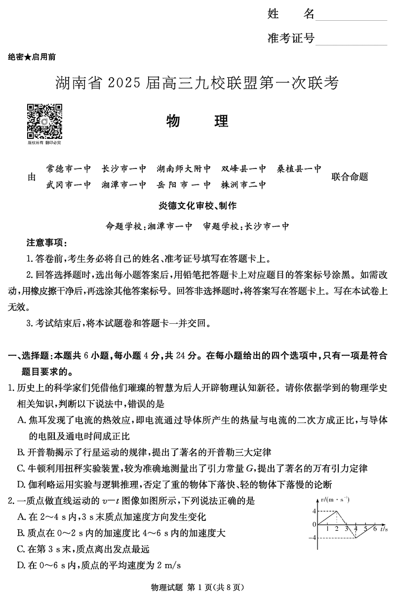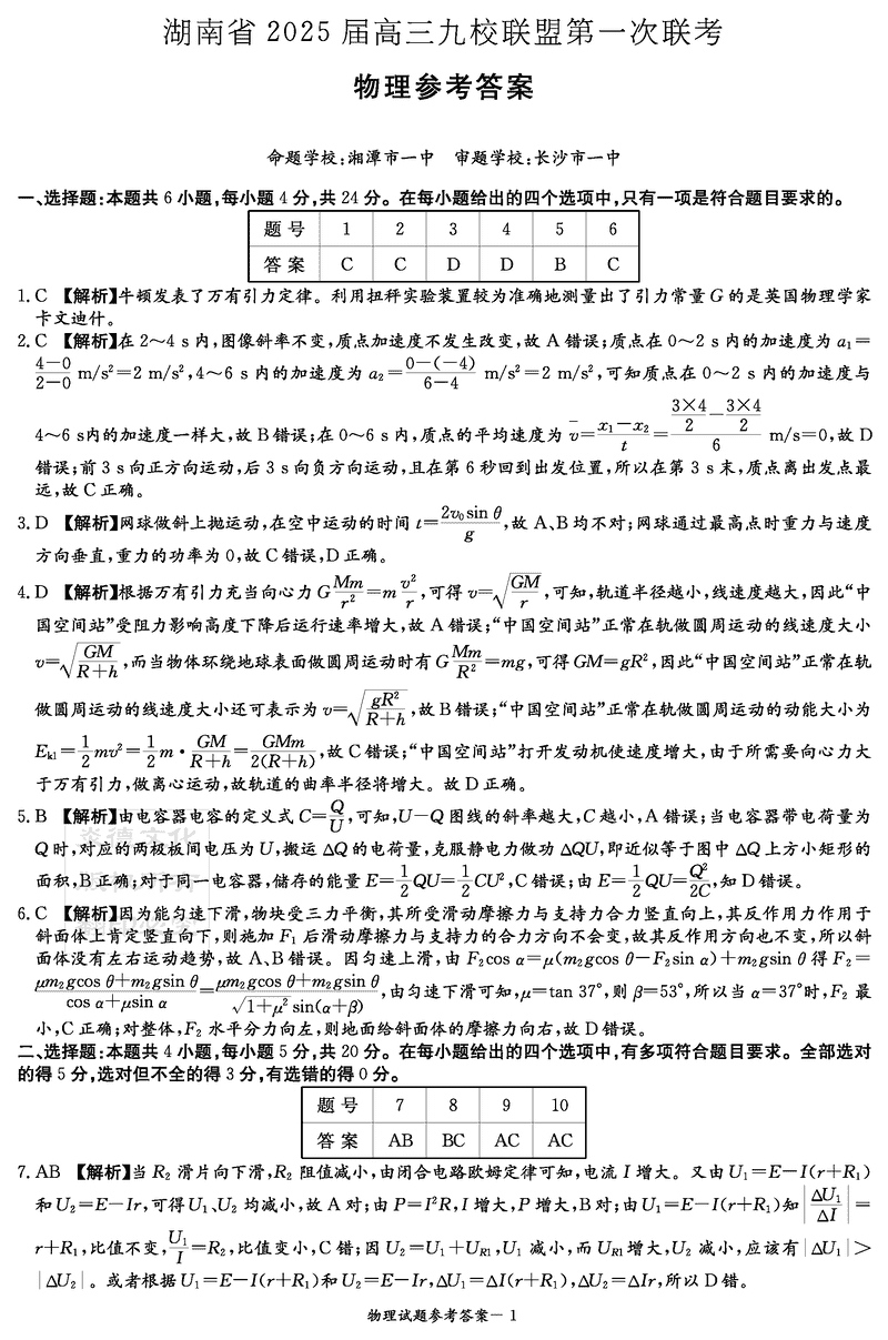 湖南九校联盟2025届高三上第一次联考物理试题及答案 时间:2024-12-17 05:42 湖南 理综试题 湖南九校联盟2025届高三上第一次联考物理考试已于近日开考,为方便考生考后及时查看考试情况,查漏补缺、弥补不足,本文整理了试题答案解析相关信息! 汇总:湖南九校联盟2025届高三上第一次联考试题及答案汇总 物理试题及答案解析