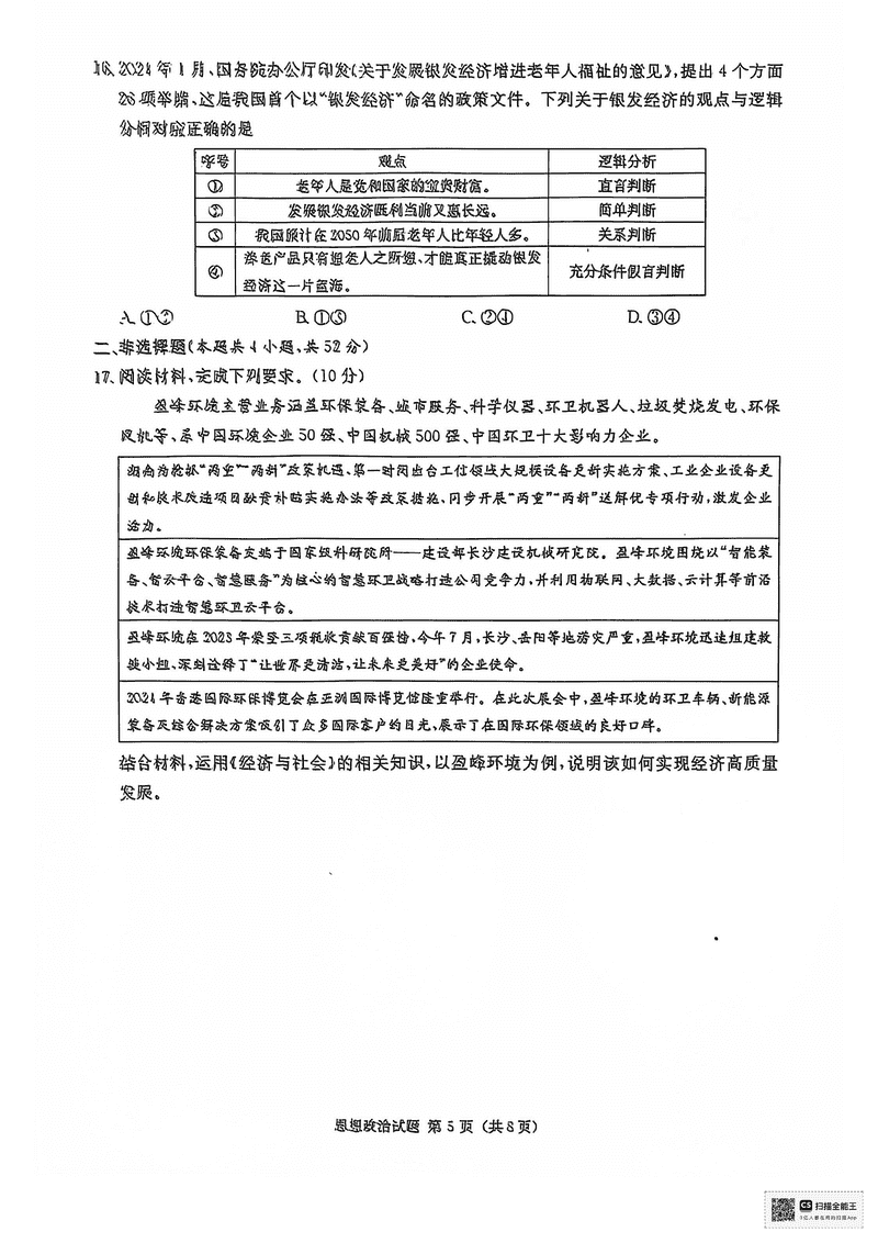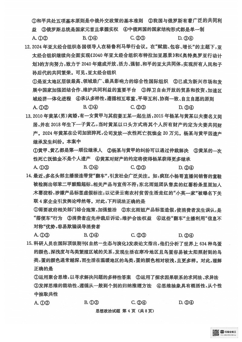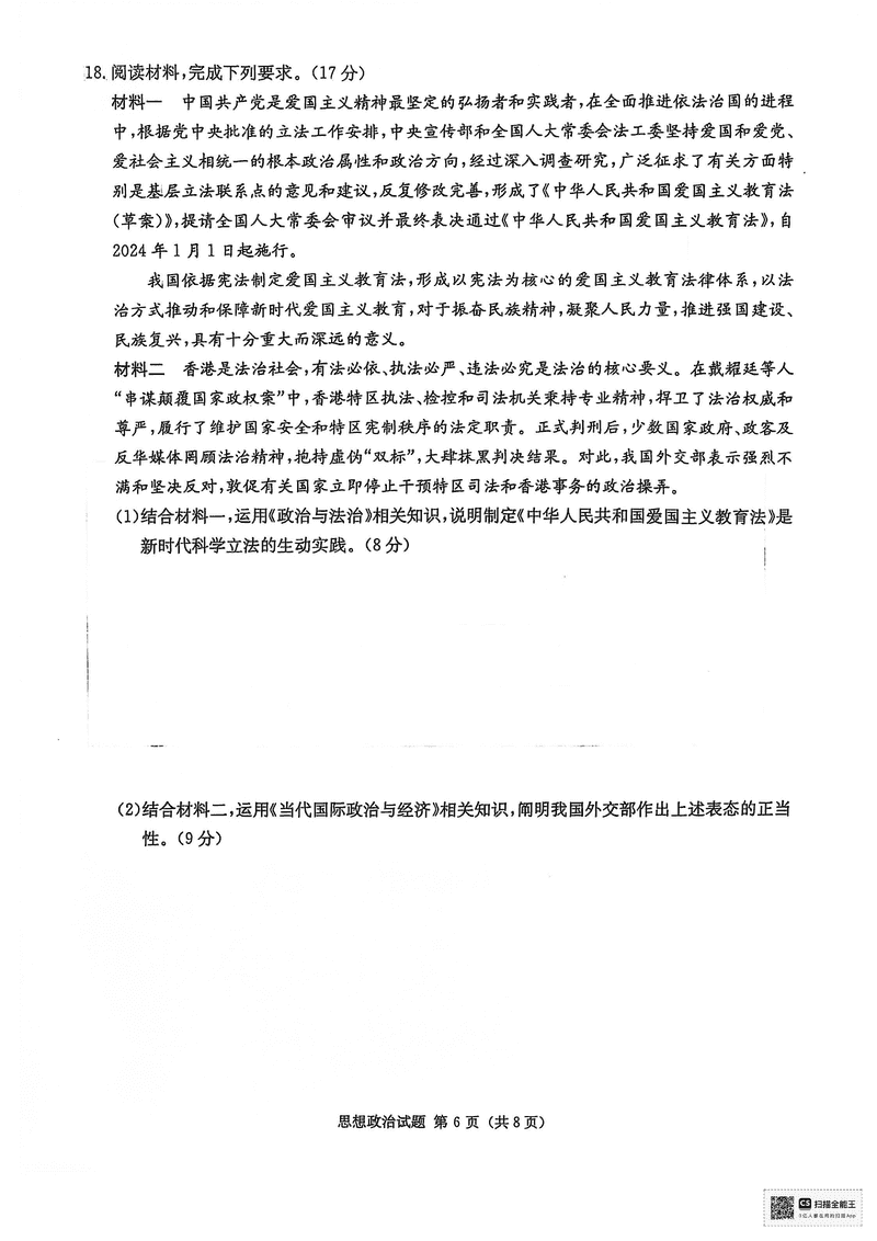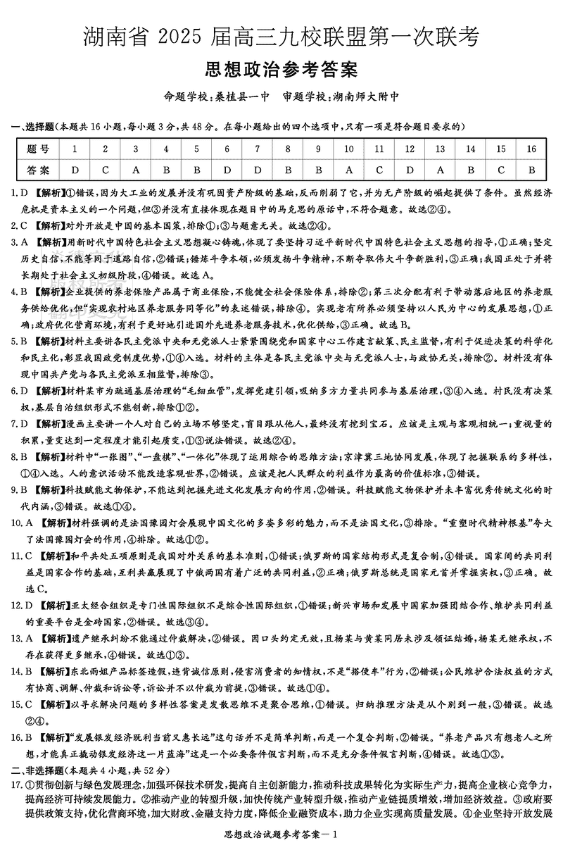 湖南九校联盟2025届高三上第一次联考政治试题及答案 时间:2024-12-17 05:43 湖南 文综试题 湖南九校联盟2025届高三上第一次联考政治考试已于近日开考,为方便考生考后及时查看考试情况,查漏补缺、弥补不足,本文整理了试题答案解析相关信息! 汇总:湖南九校联盟2025届高三上第一次联考试题及答案汇总 政治试题及答案解析