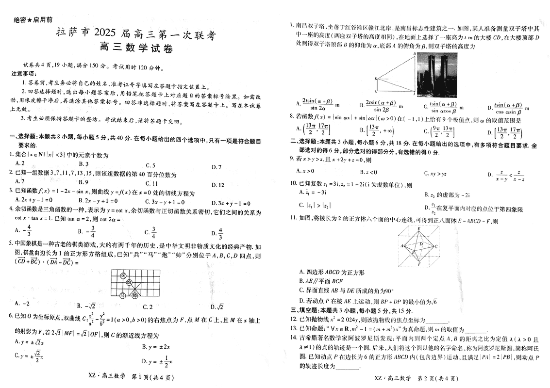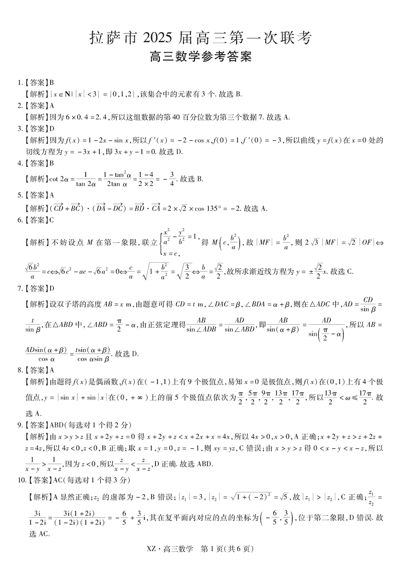 2025届西藏拉萨高三一模数学试题及答案 时间:2024-12-17 05:47 西藏 数学试题 2025届西藏拉萨高三一模数学考试已于近日开考,为方便考生考后及时查看考试情况,查漏补缺、弥补不足,本文整理了试题答案解析相关信息! 汇总:2025届西藏拉萨高三一模试题及答案汇总 数学试题及答案解析