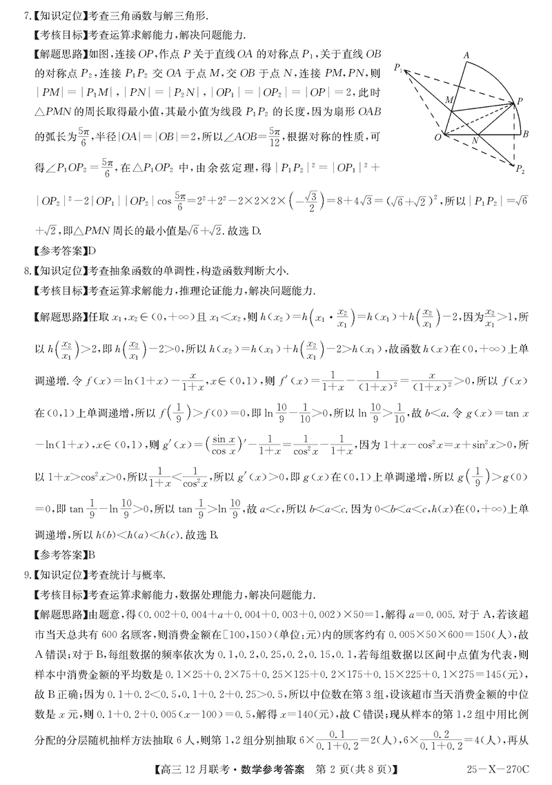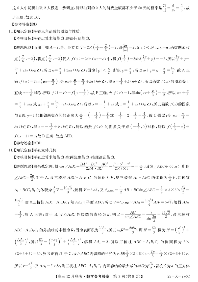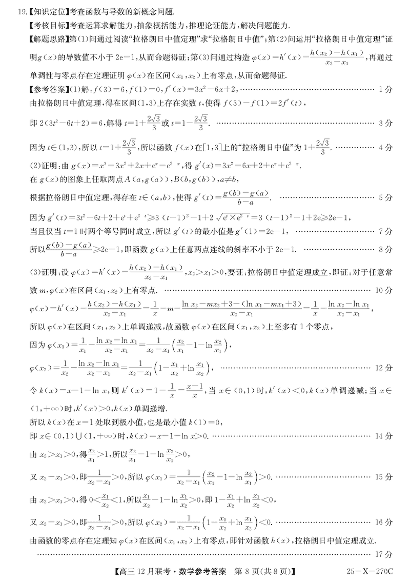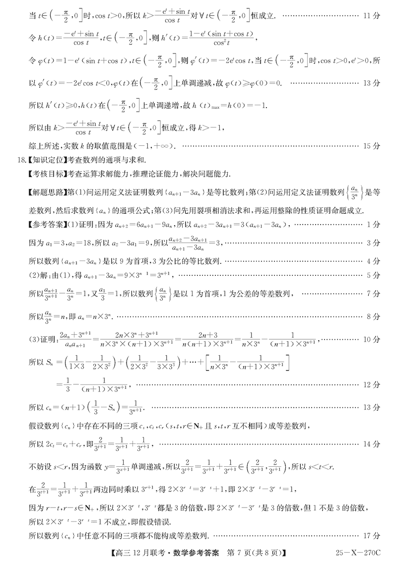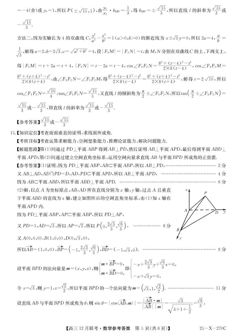 安徽省县中联盟2024-2025学年高三上12月联考数学试题及答案