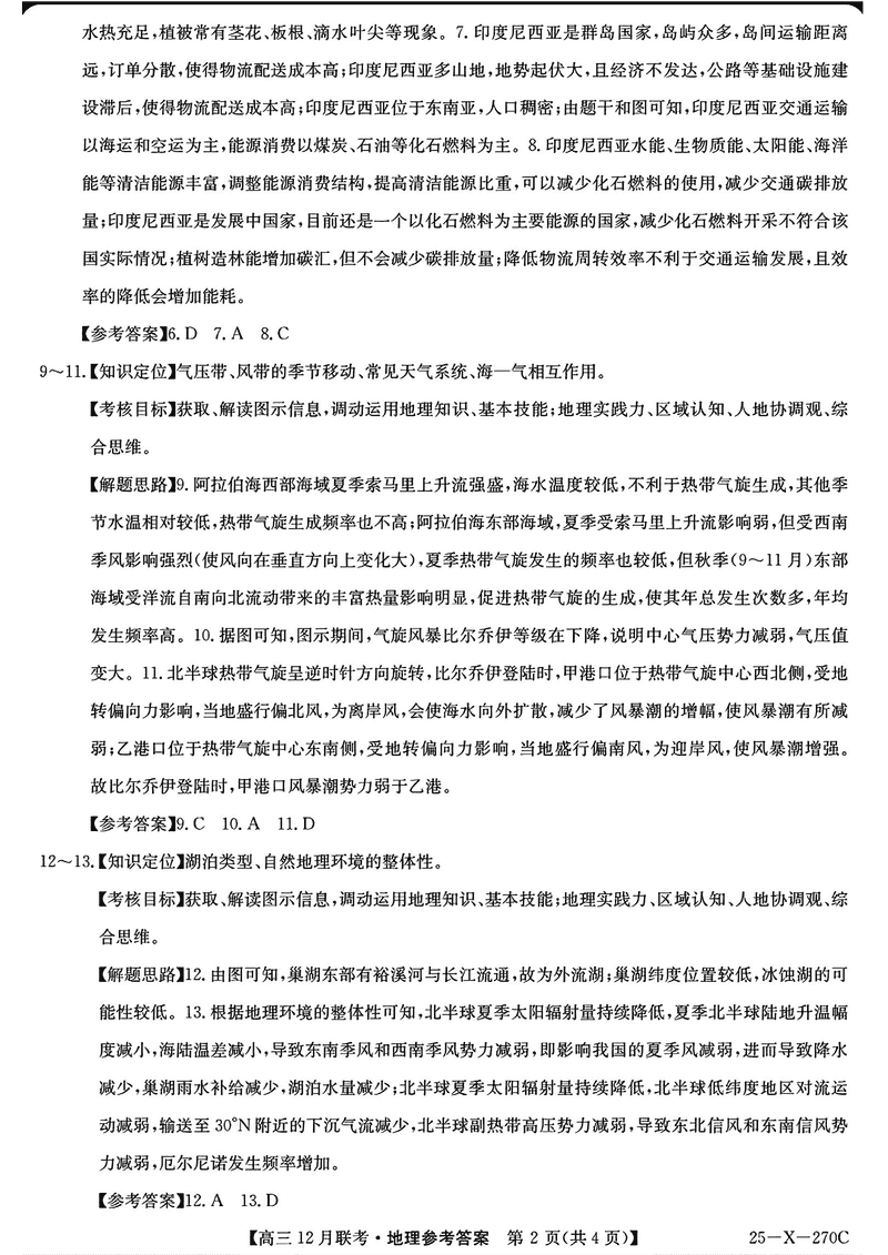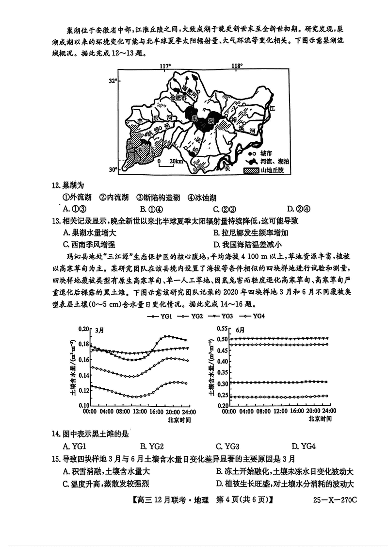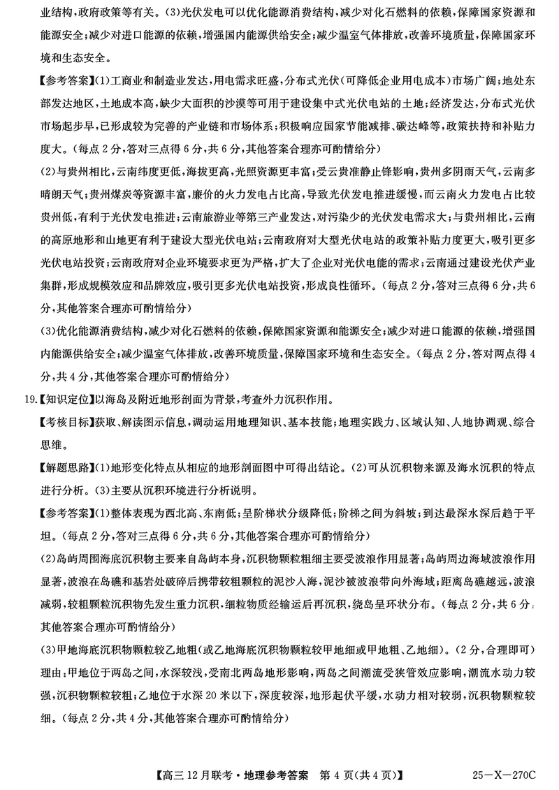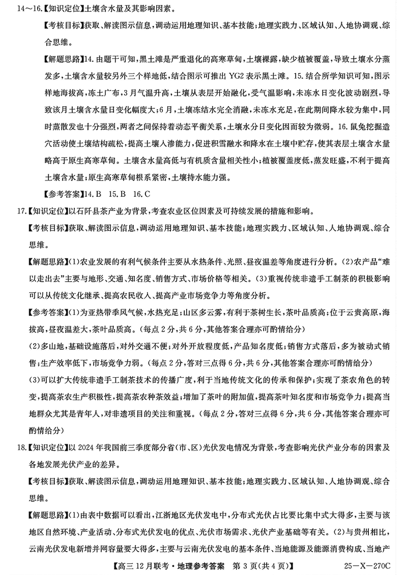 安徽省县中联盟2024-2025学年高三上12月联考地理试题及答案