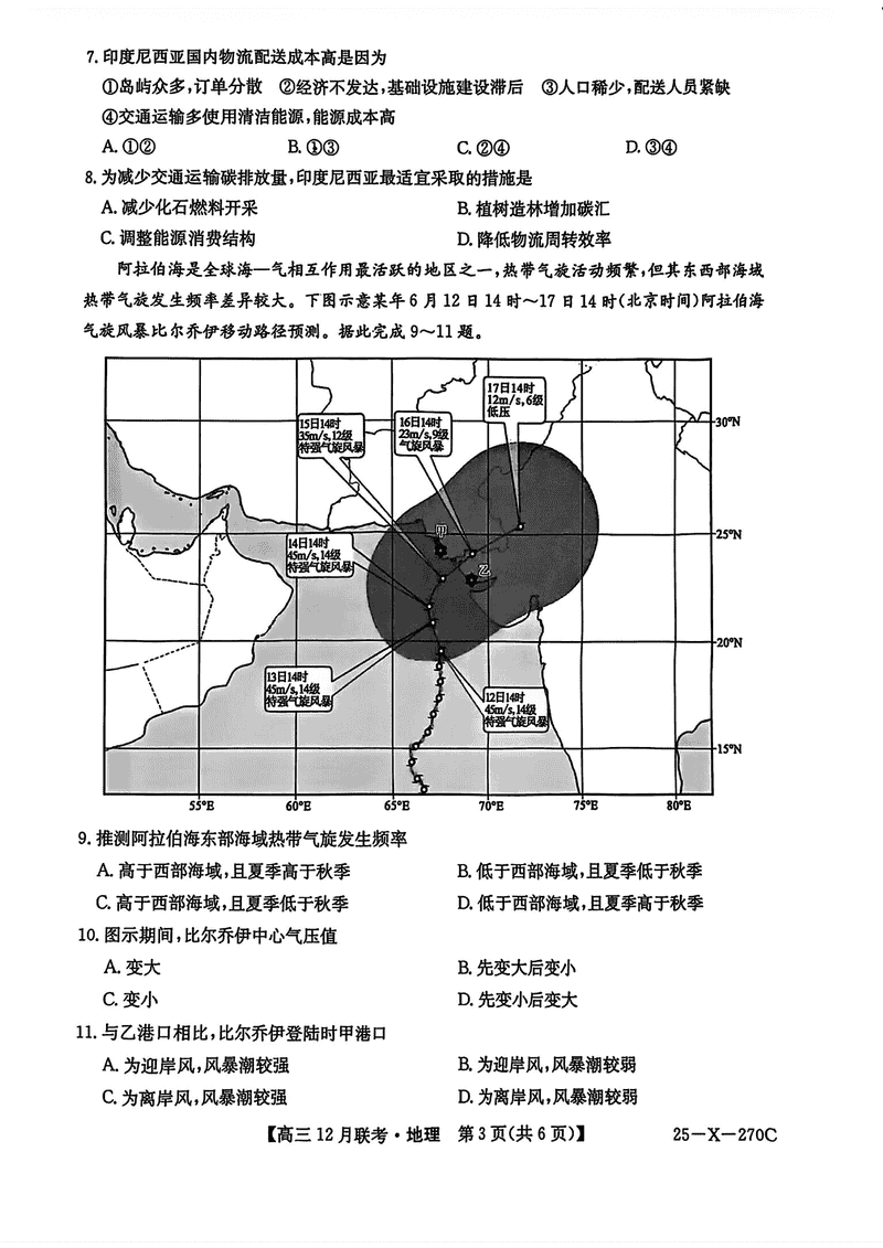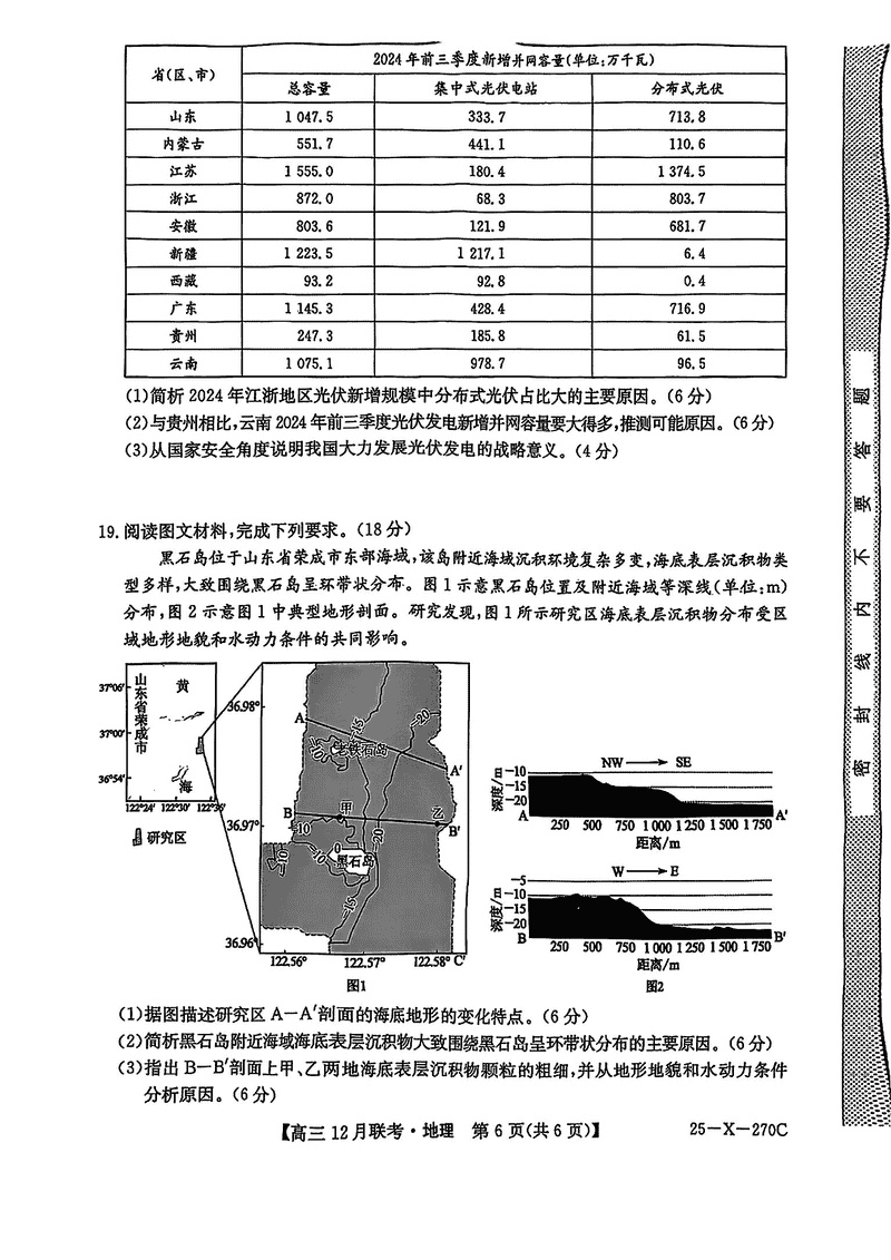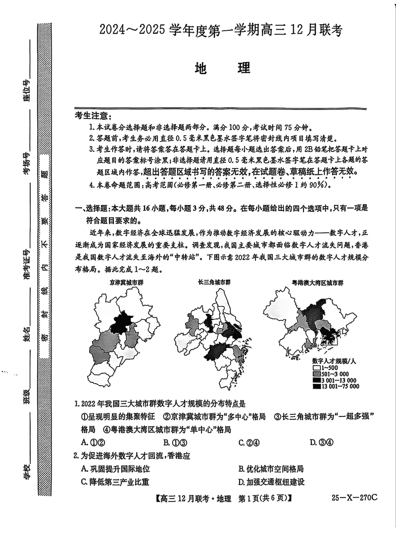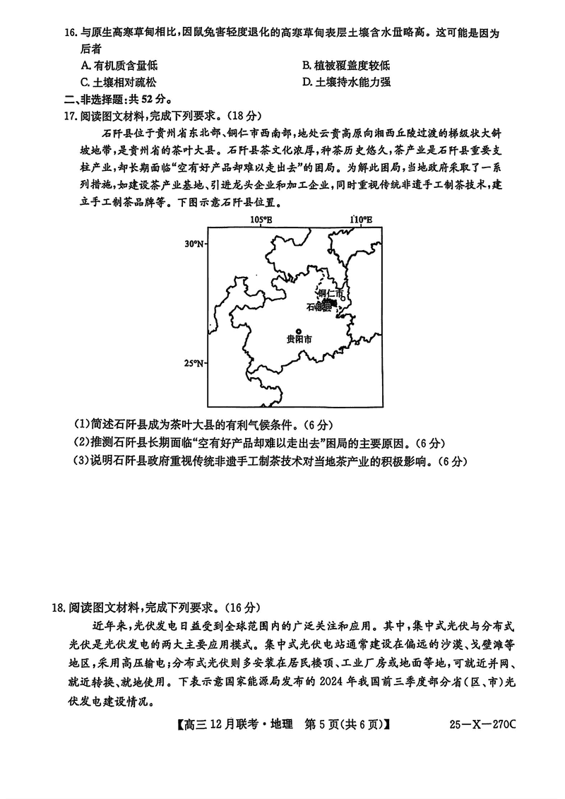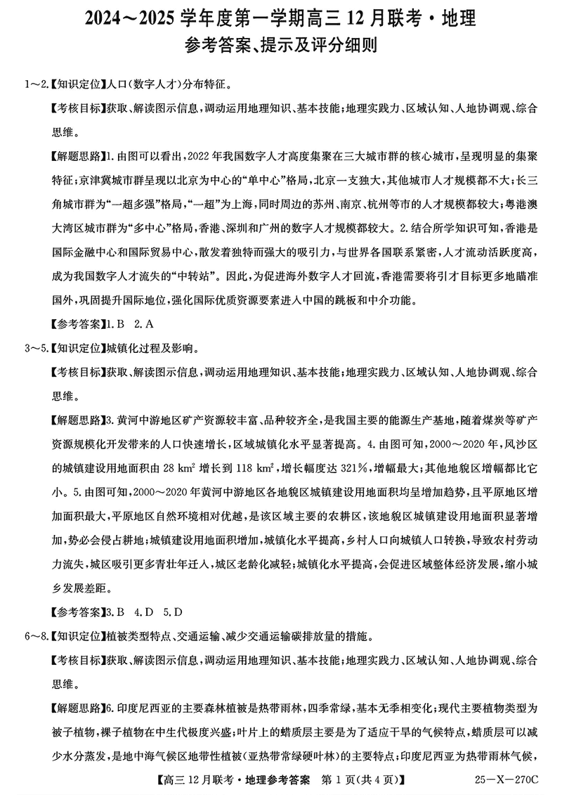 安徽省县中联盟2024-2025学年高三上12月联考地理试题及答案