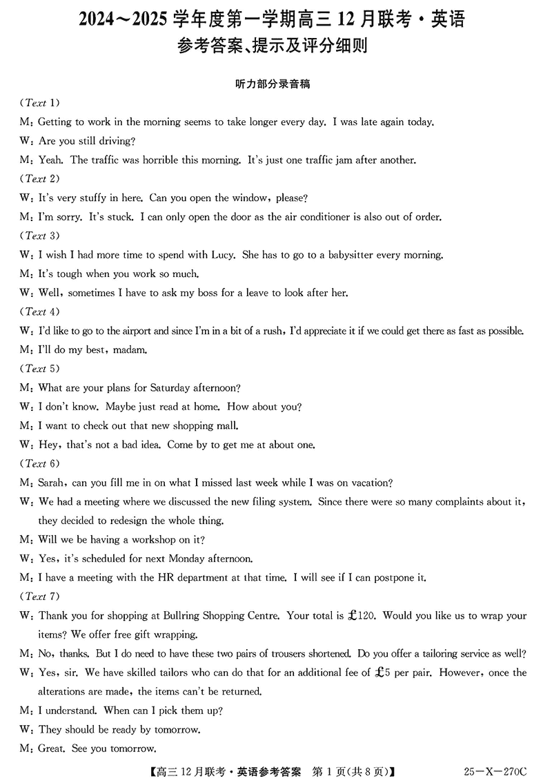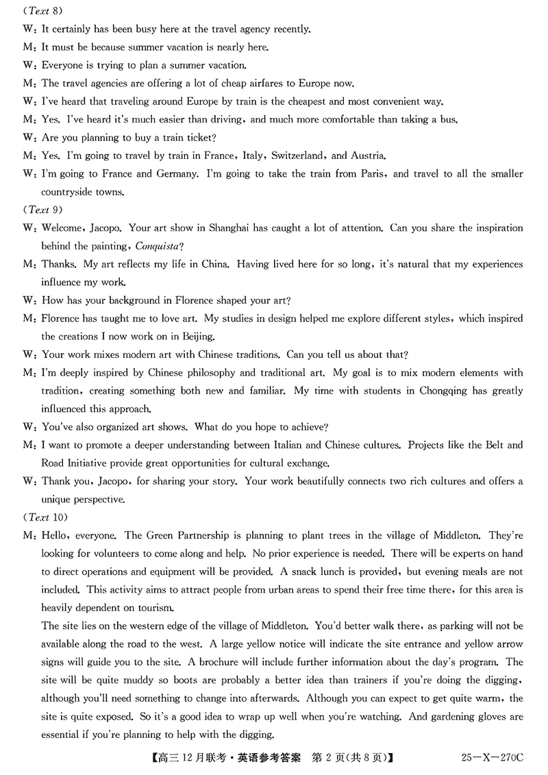安徽省县中联盟2024-2025学年高三上12月联考英语试题及答案