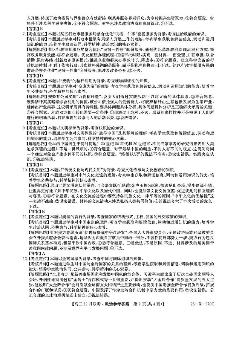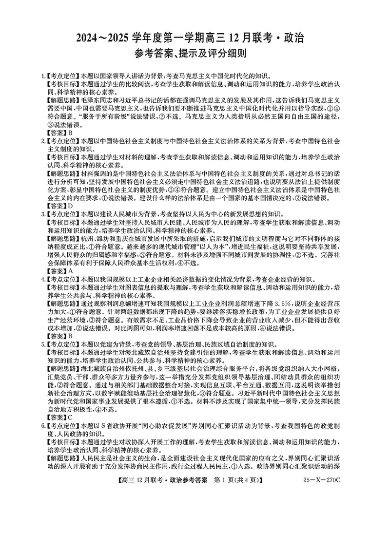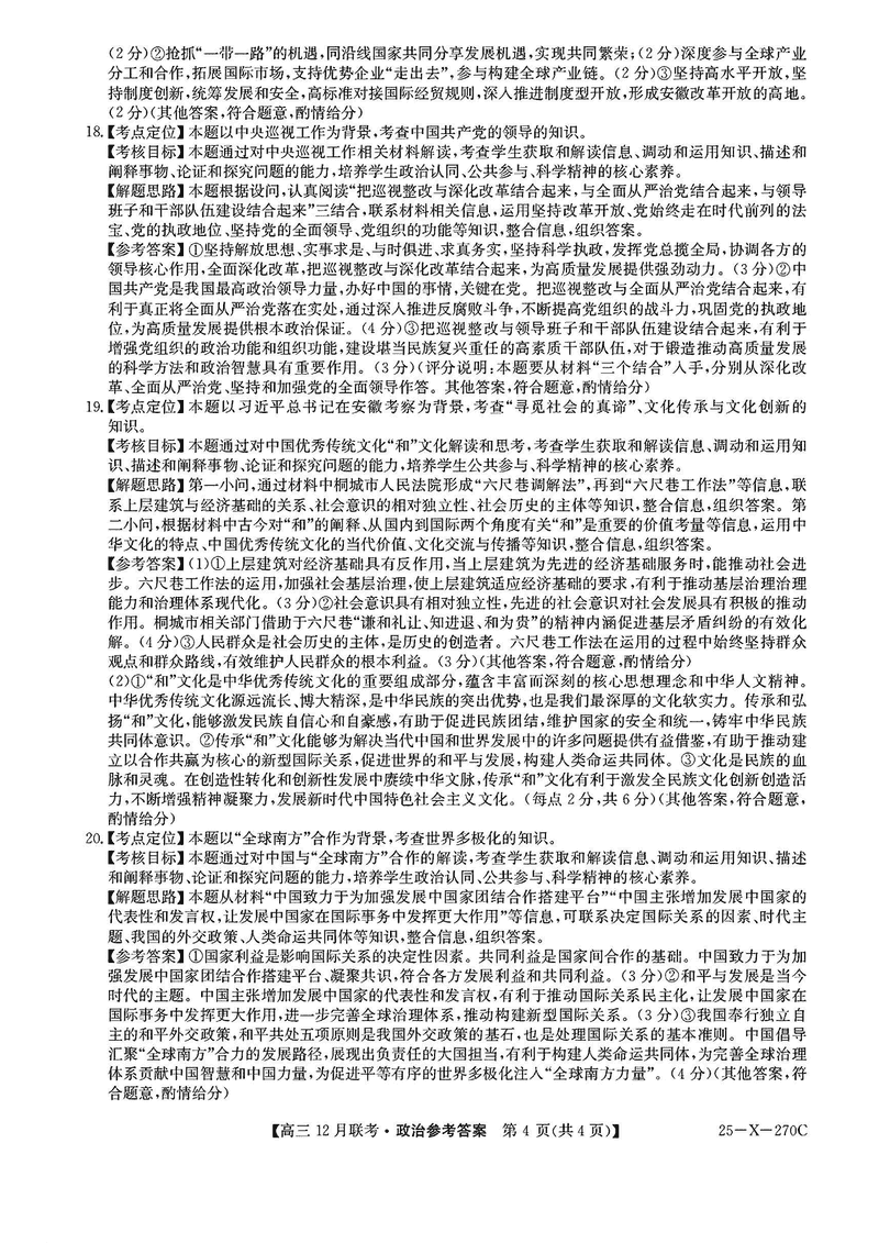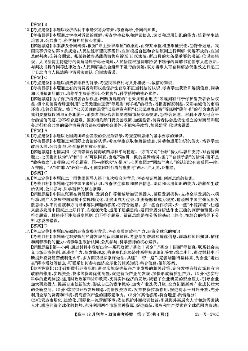 安徽省县中联盟2024-2025学年高三上12月联考政治试题及答案