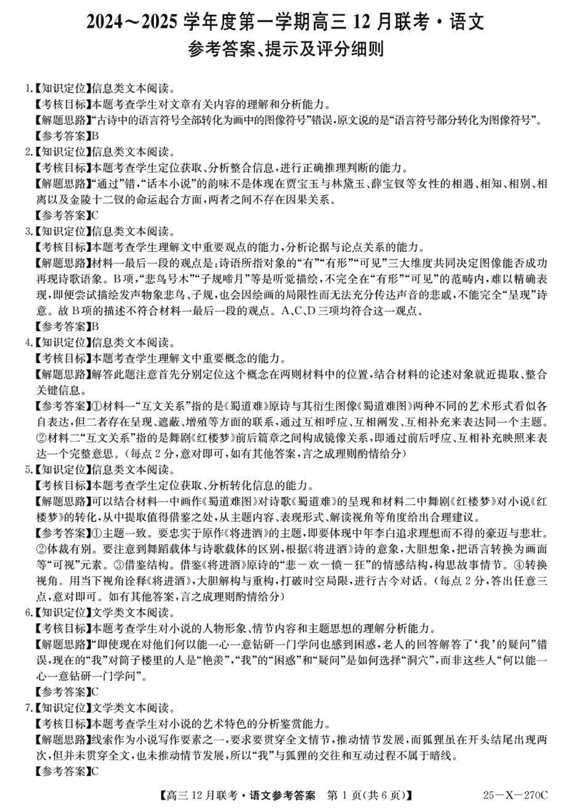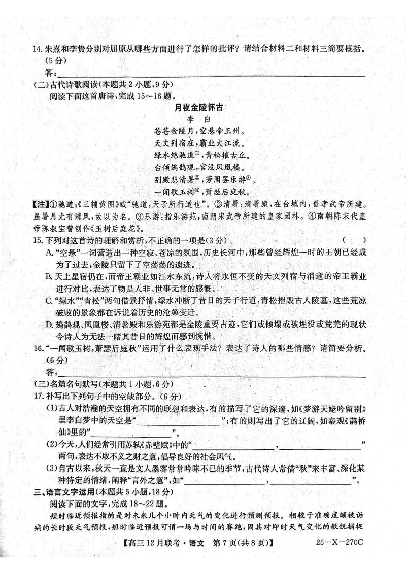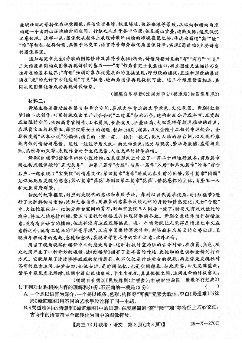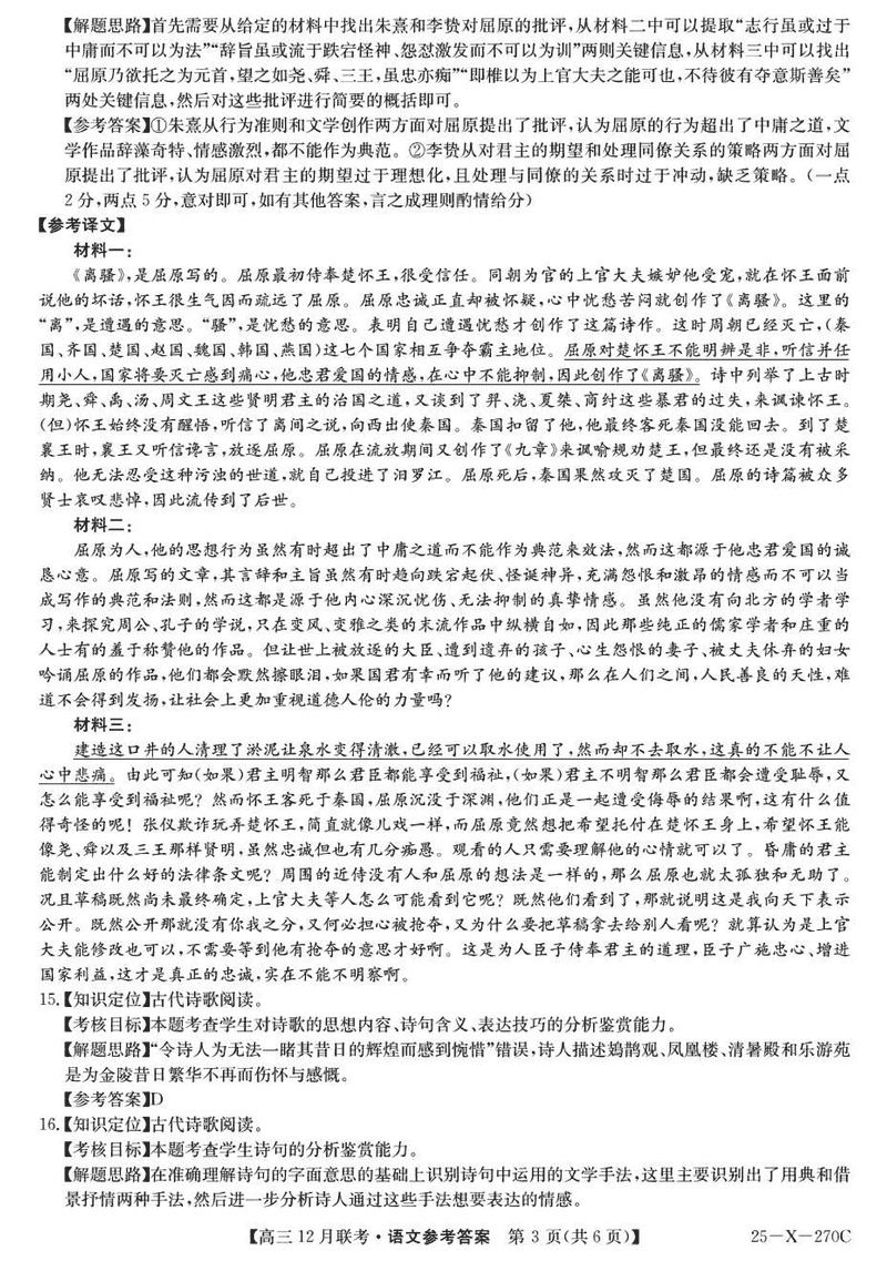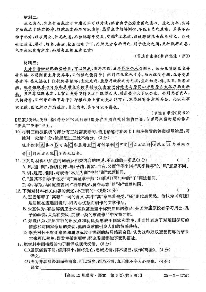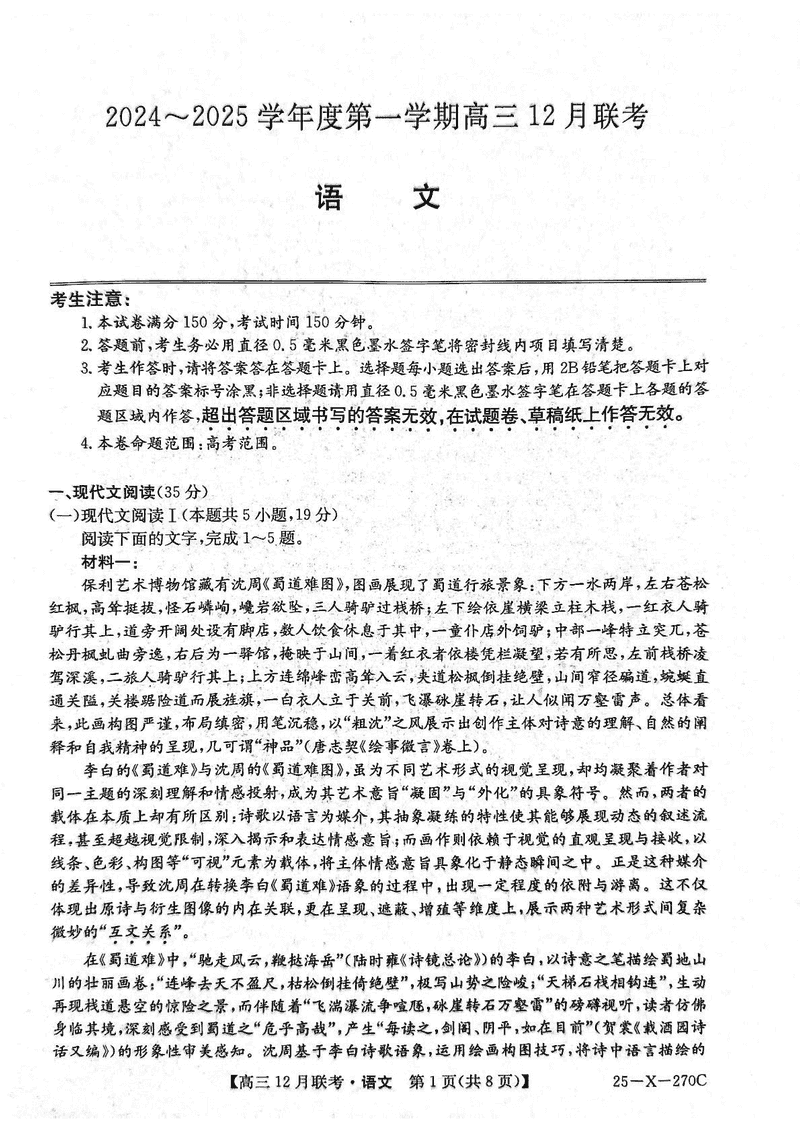 安徽省县中联盟2024-2025学年高三上12月联考语文试题及答案