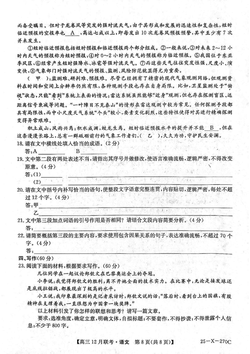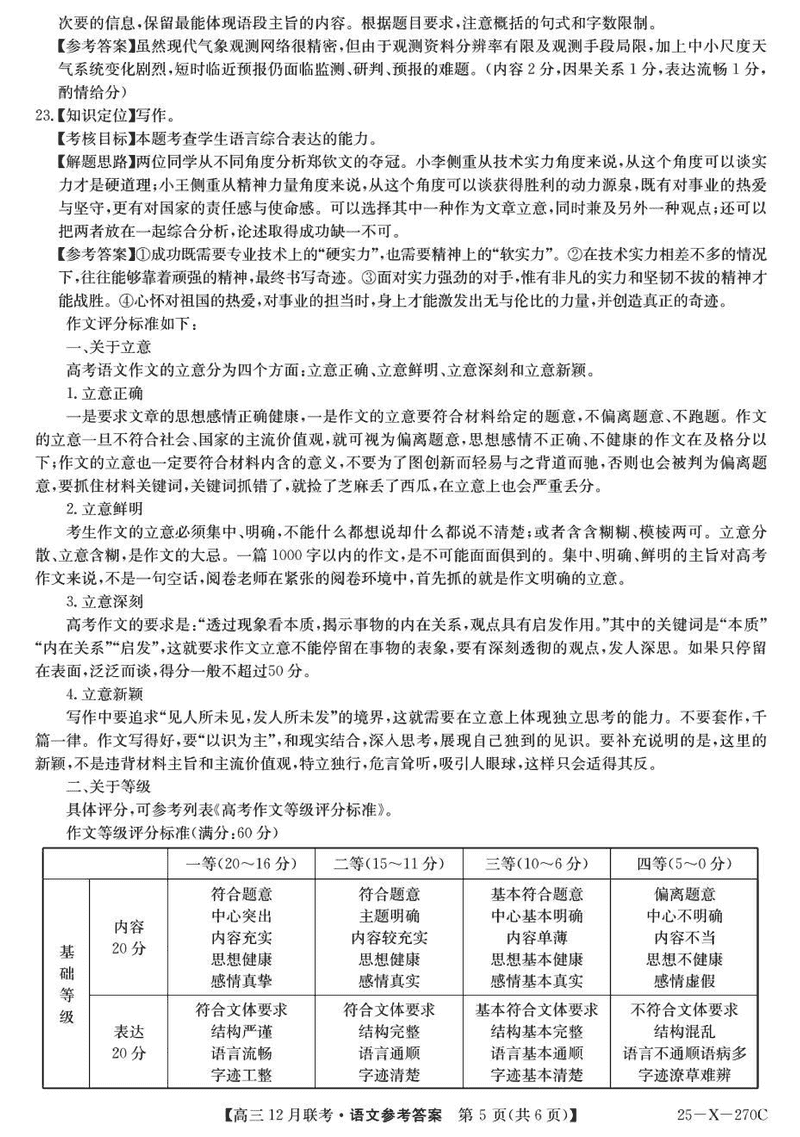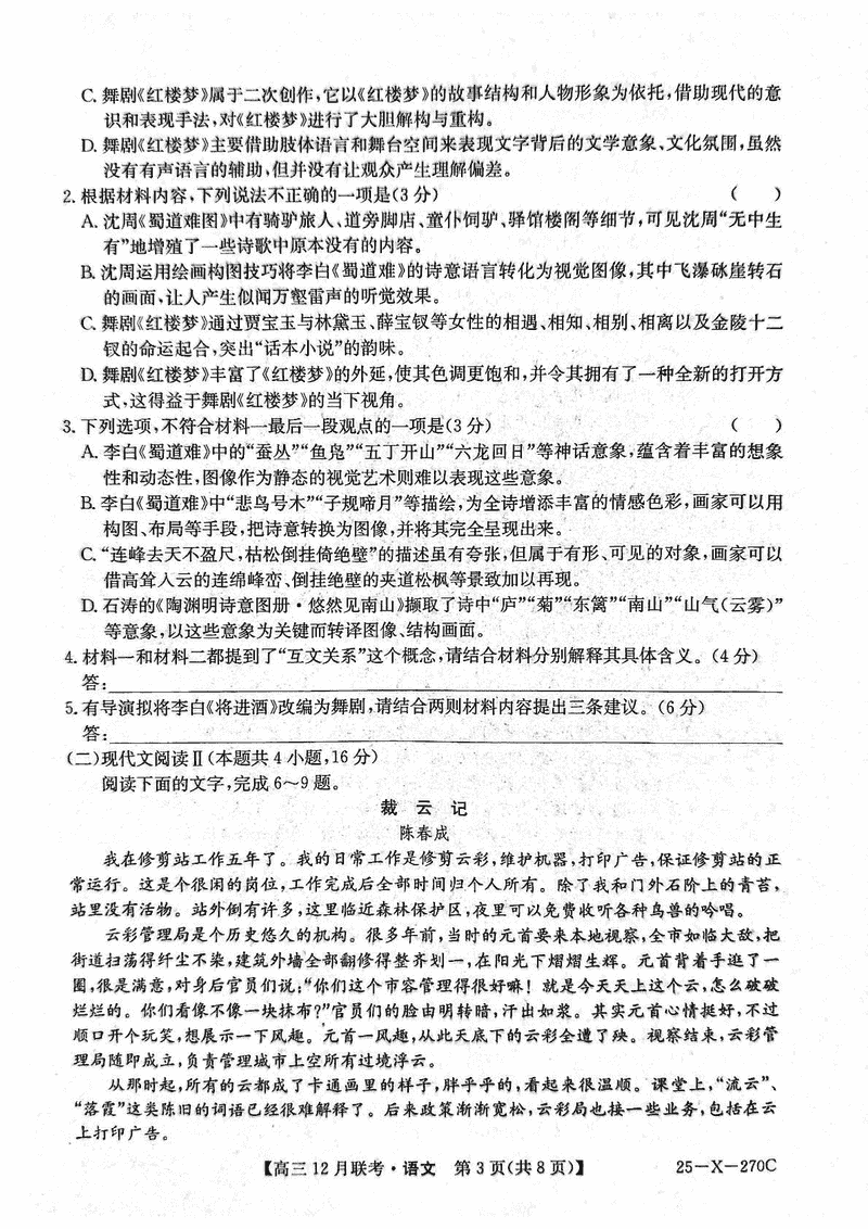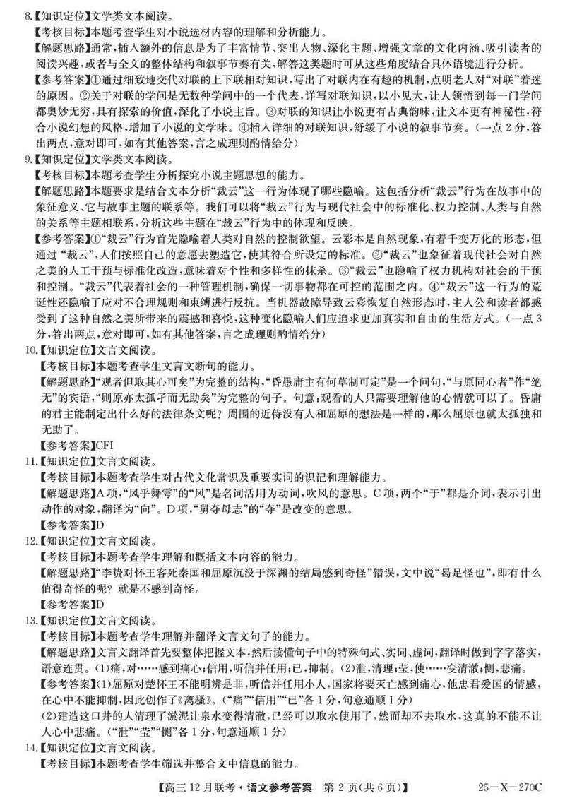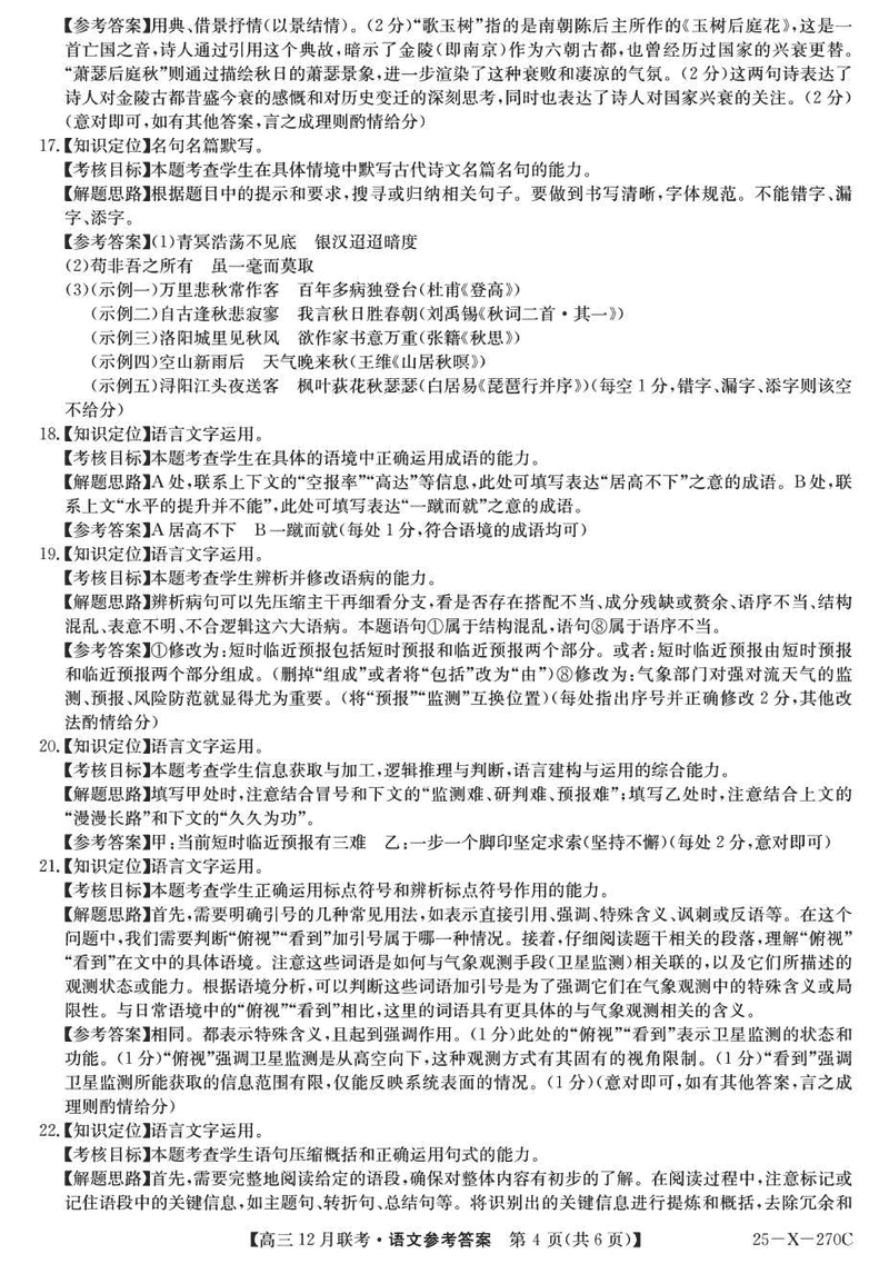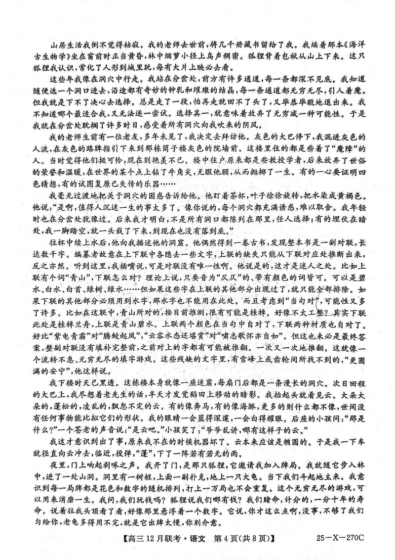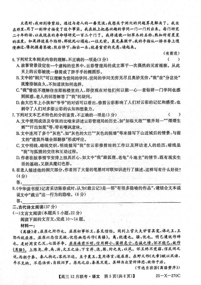 安徽省县中联盟2024-2025学年高三上12月联考语文试题及答案