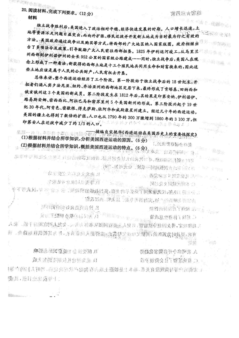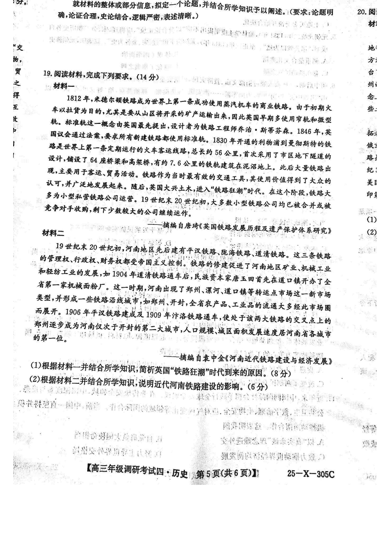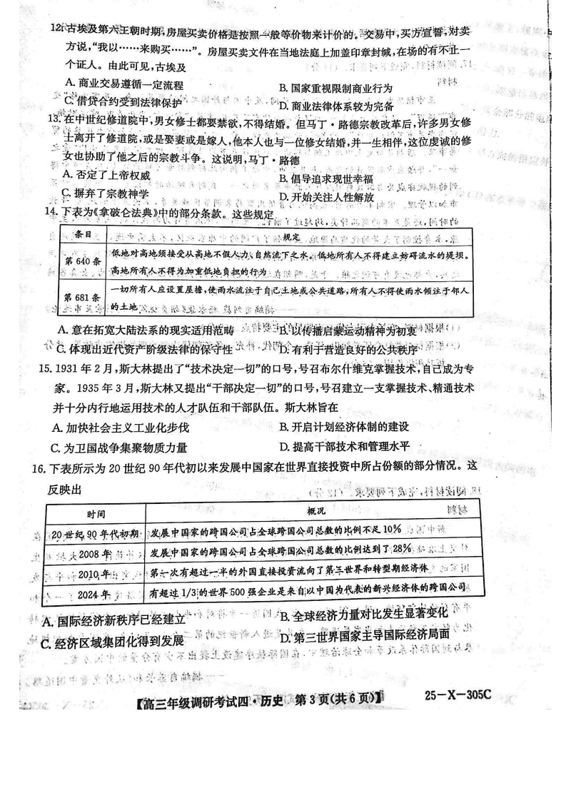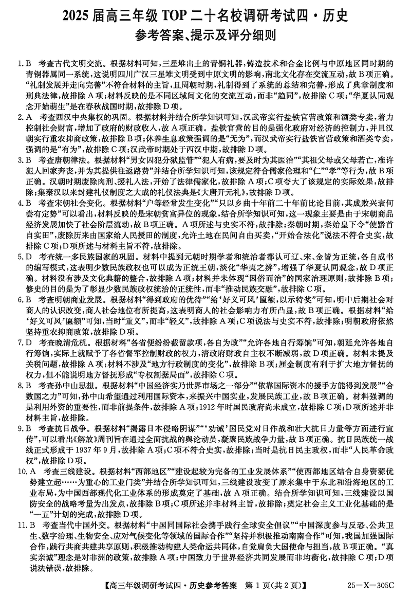 河南TOP20名校2025届高三上调研四历史试题及答案