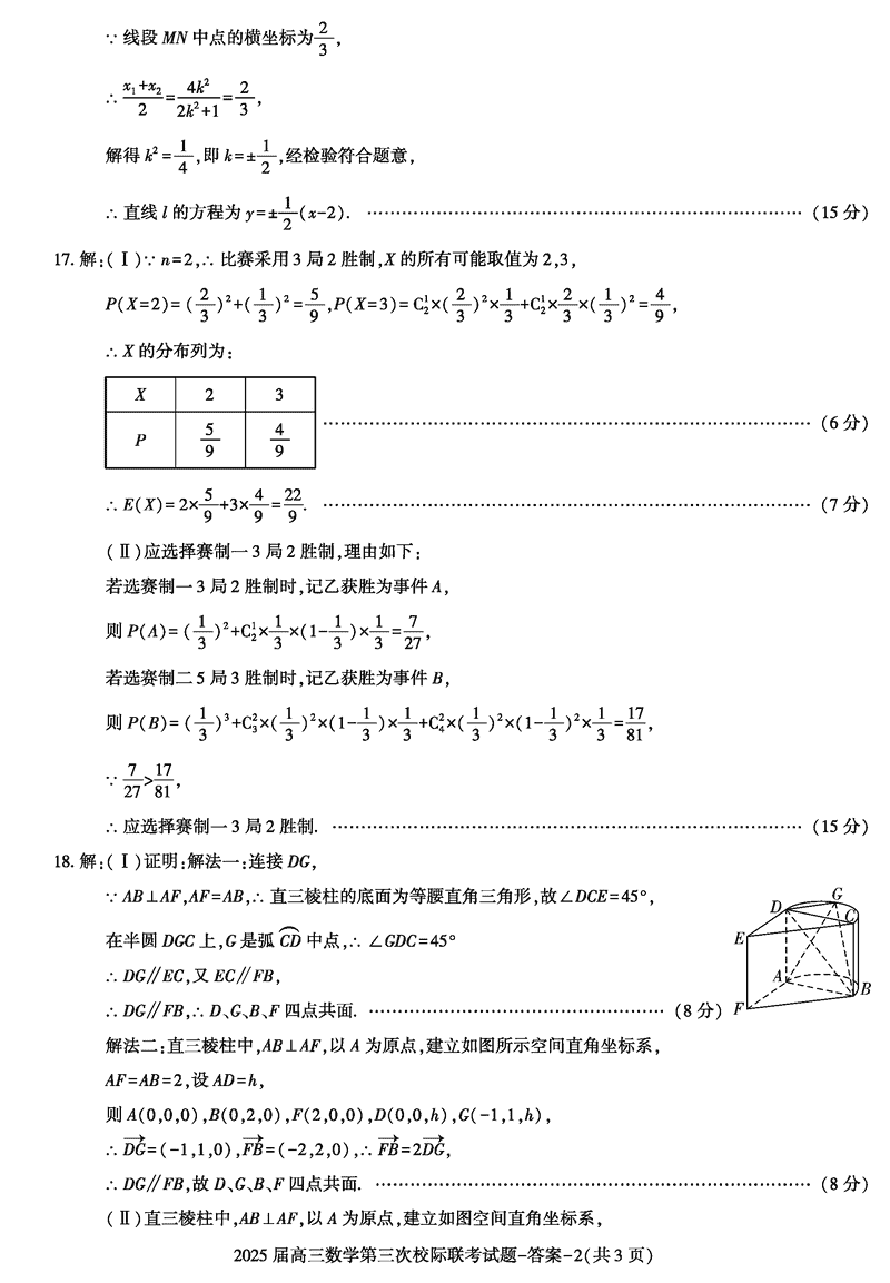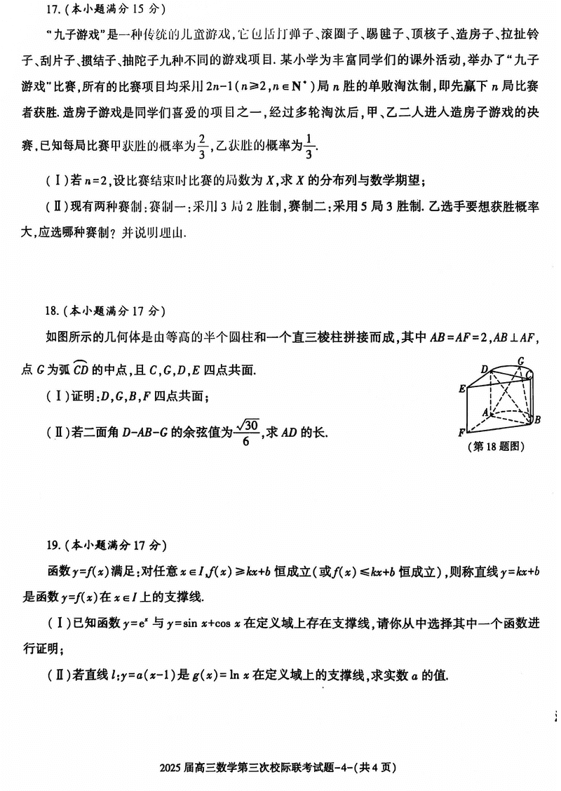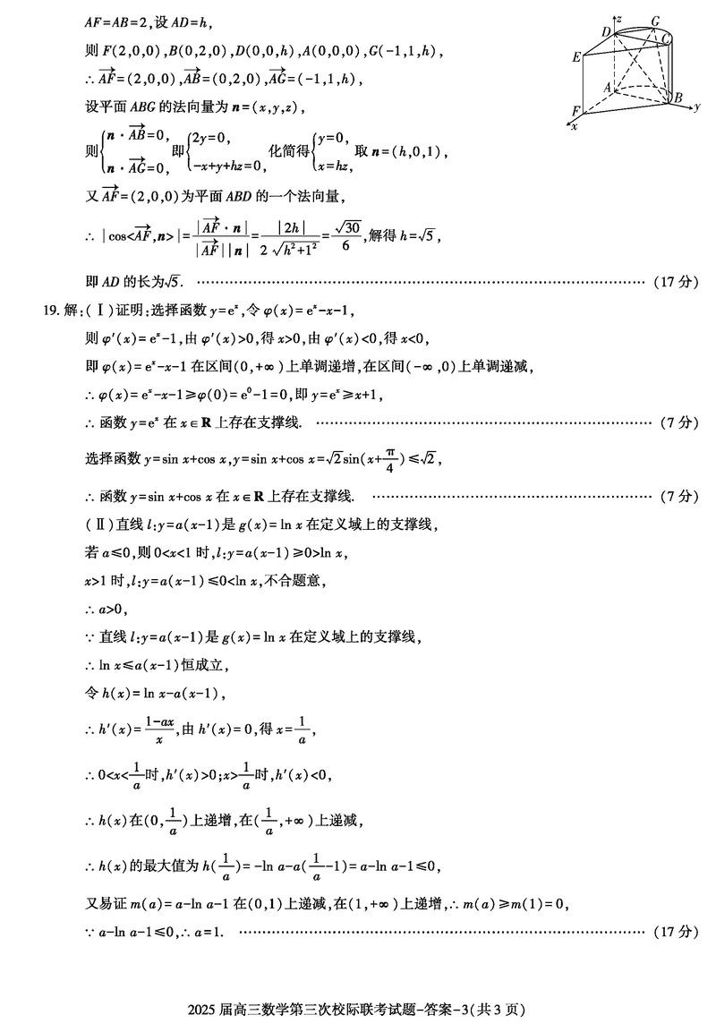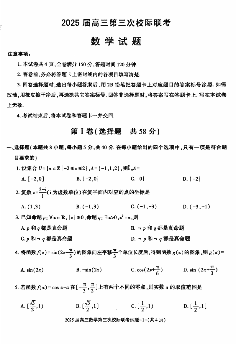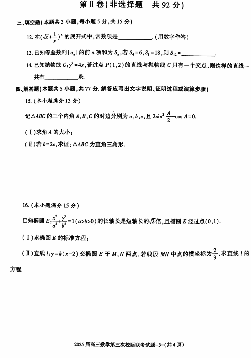 陕西汉中2025届高三上12月第三次校际联考数学试题及答案