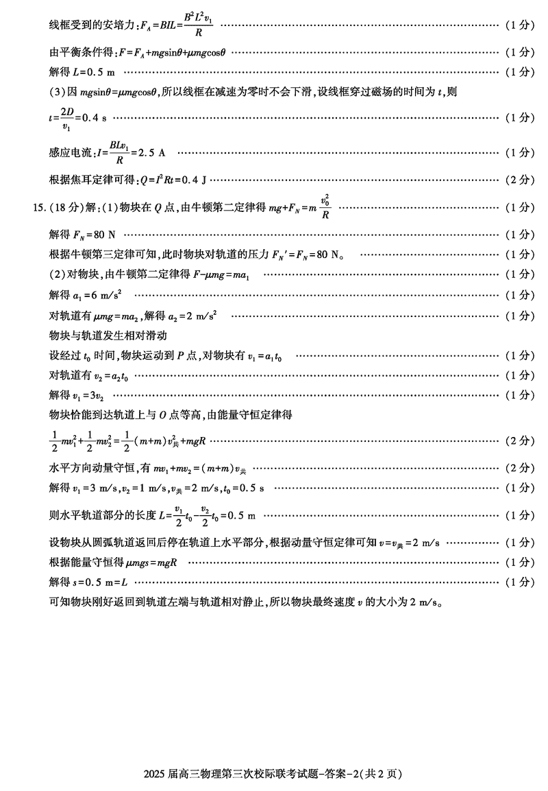 陕西汉中2025届高三上12月第三次校际联考物理试题及答案