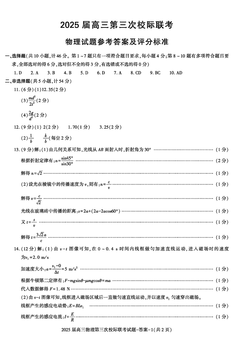 陕西汉中2025届高三上12月第三次校际联考物理考试已于近日开考,为方便考生考后及时查看考试情况,查漏补缺、弥补不足,本文整理了试题答案解析相关信息!