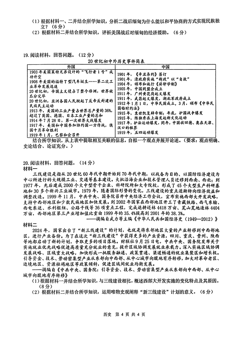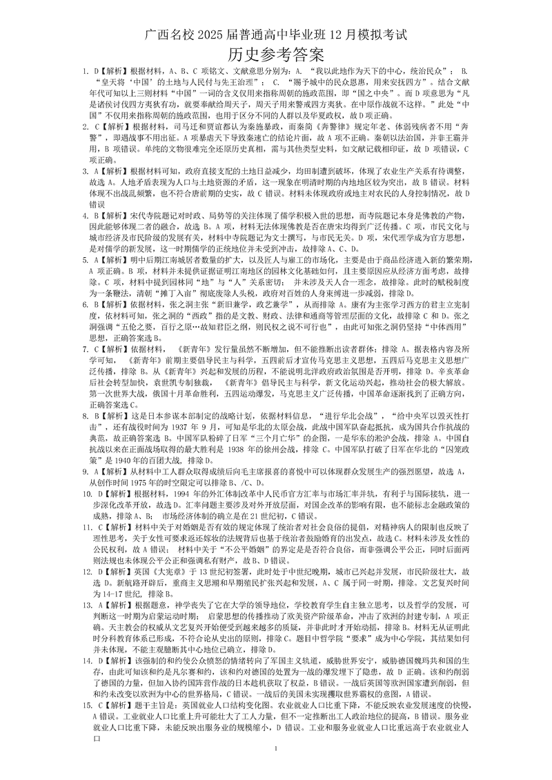广西名校2025届高中毕业班12月模拟历史试题及答案