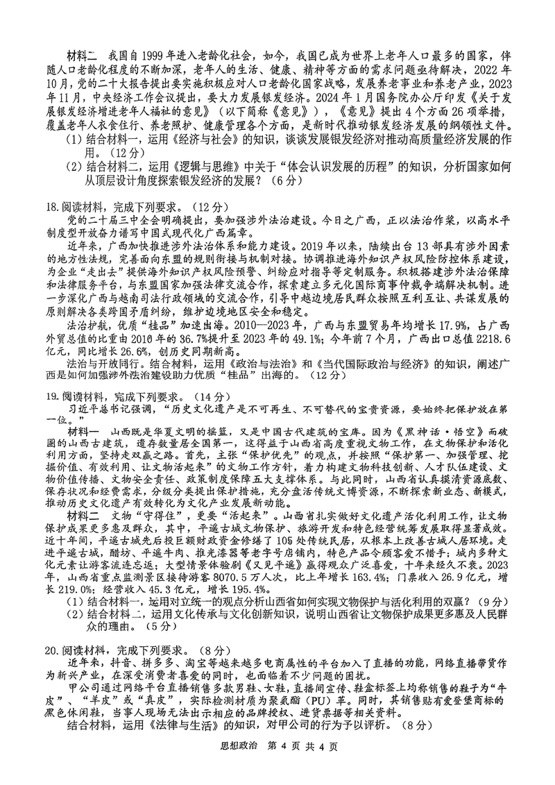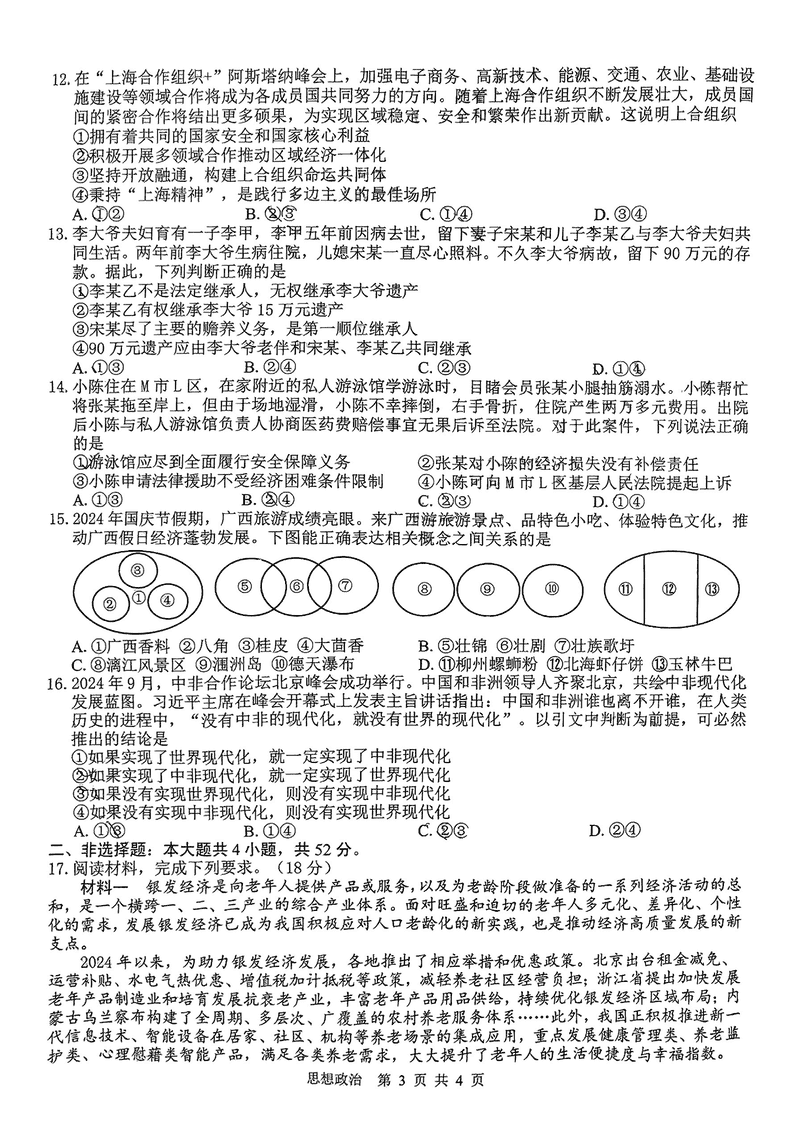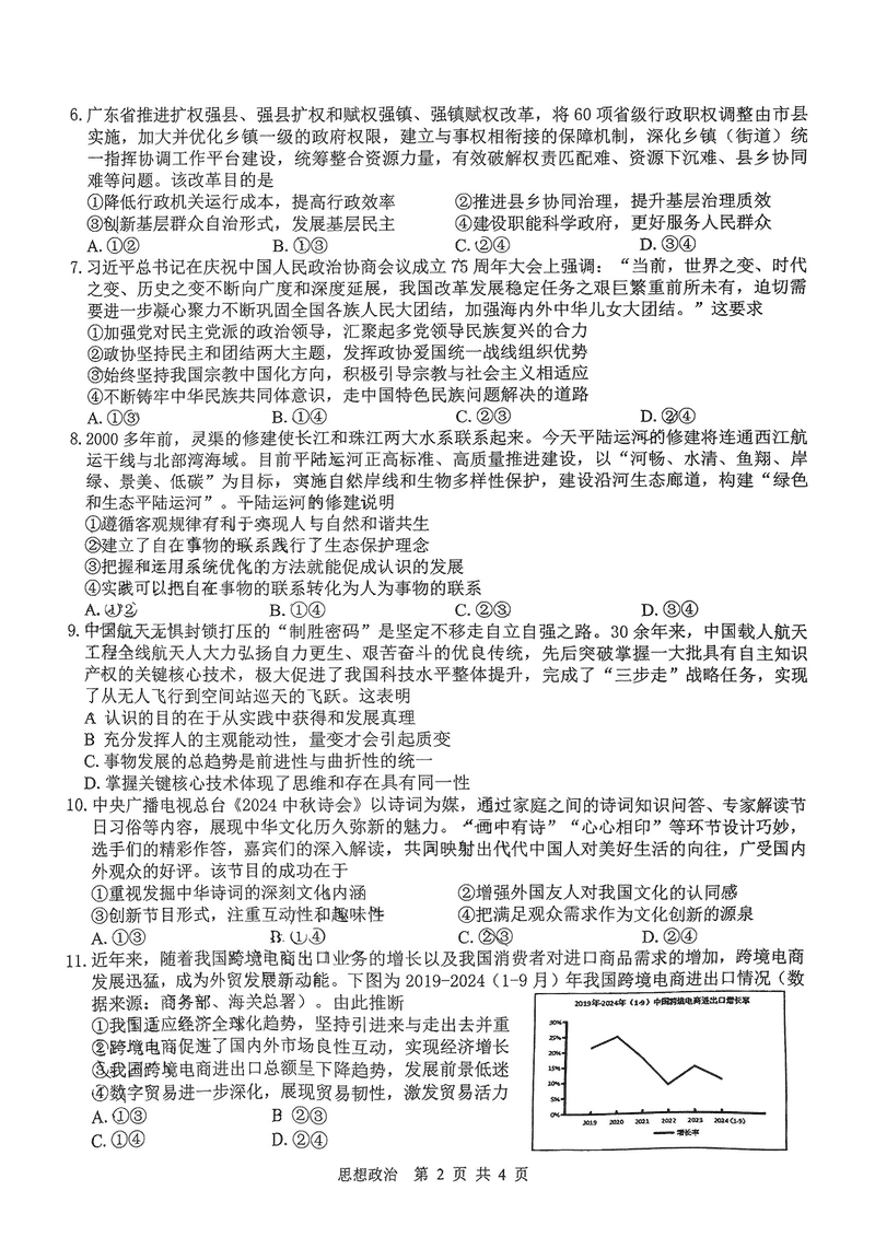 广西名校2025届高中毕业班12月模拟政治试题及答案