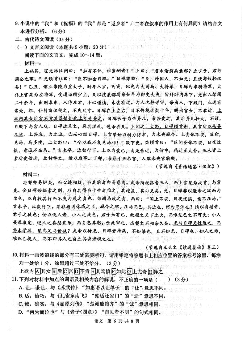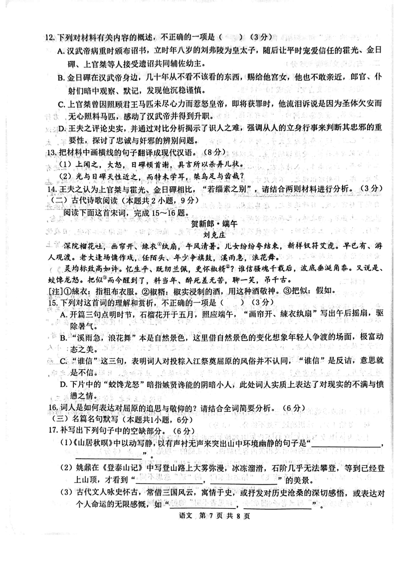 广西名校2025届高中毕业班12月模拟语文试题及答案