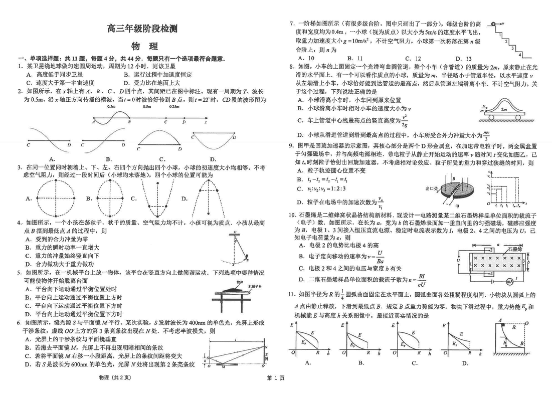 海安高级中学2024学年高三上12月阶段测物理试题及答案