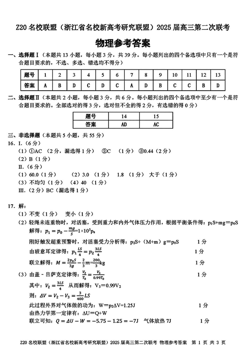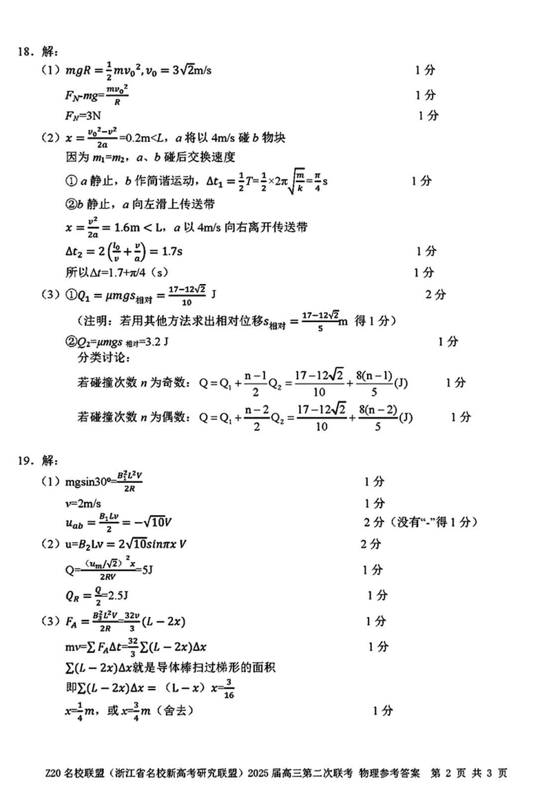 浙江Z20名校联盟2025届高三上学期第二次联考物理考试已于近日开考,为方便考生考后及时查看考试情况,查漏补缺、弥补不足,本文整理了试题答案解析相关信息!