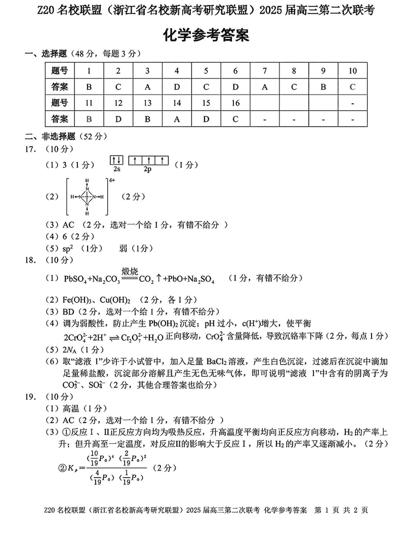 浙江Z20名校联盟2025届高三上学期第二次联考化学考试已于近日开考,为方便考生考后及时查看考试情况,查漏补缺、弥补不足,本文整理了试题答案解析相关信息!