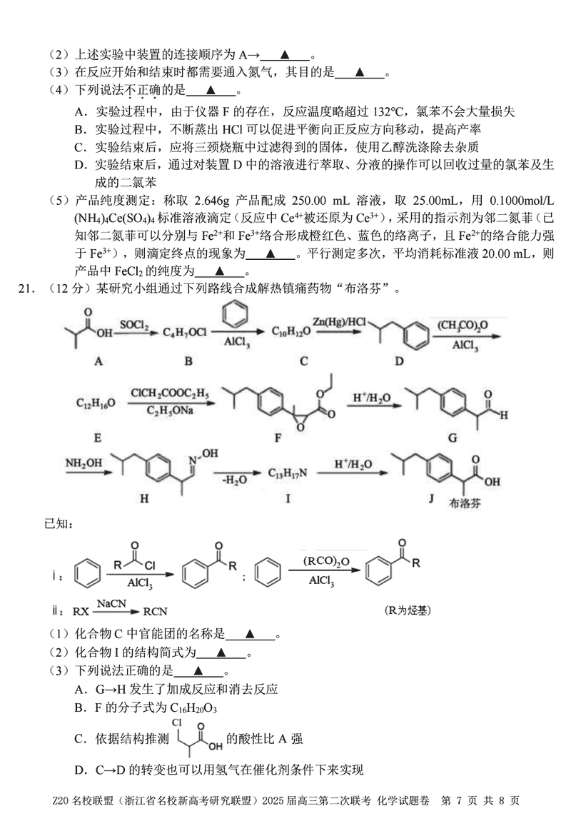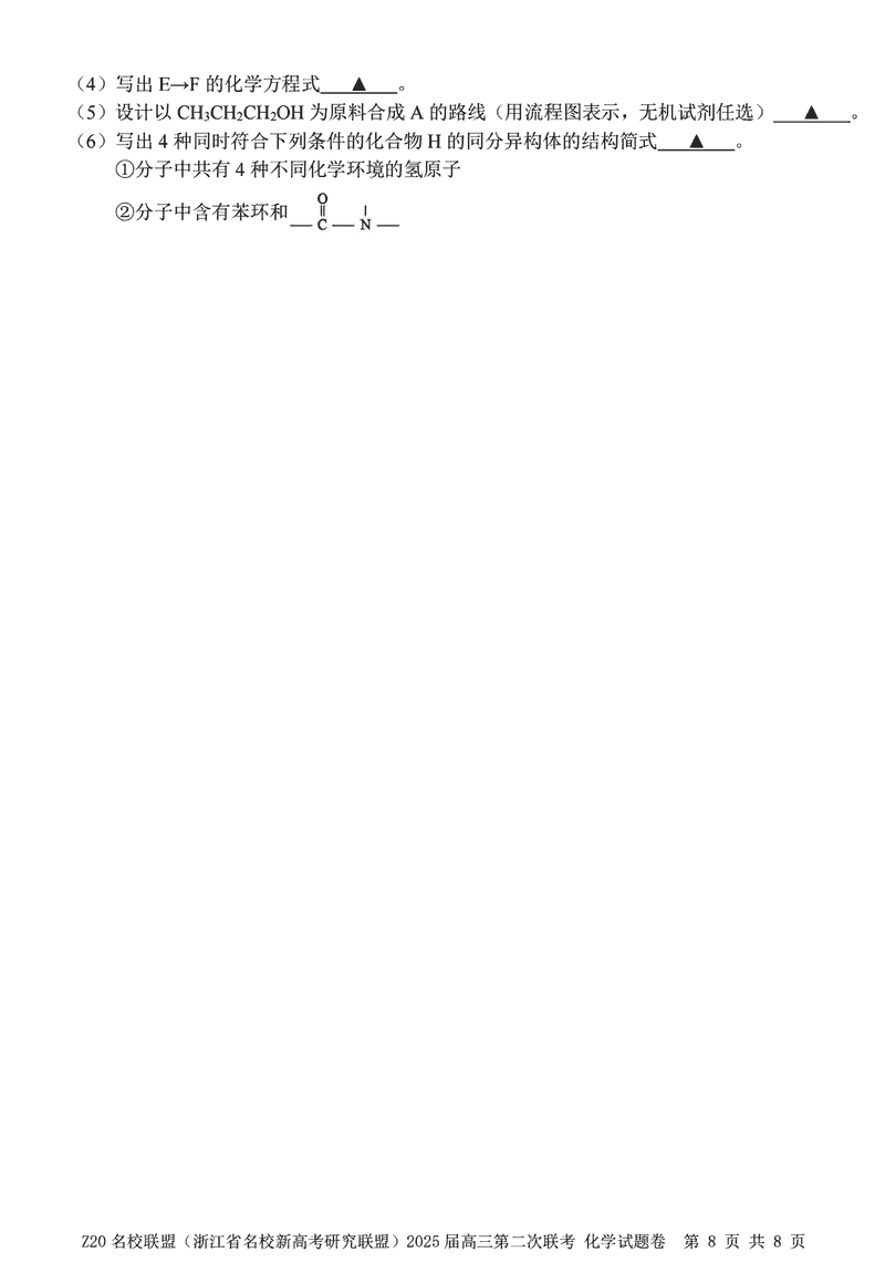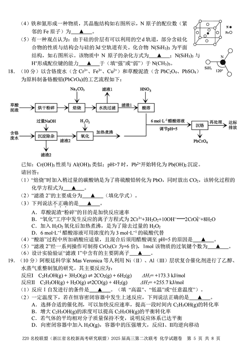 浙江Z20名校联盟2025届高三上学期第二次联考化学试题及答案