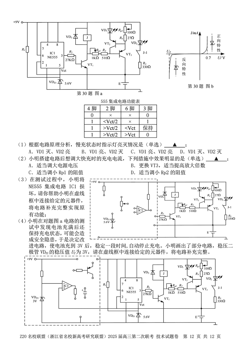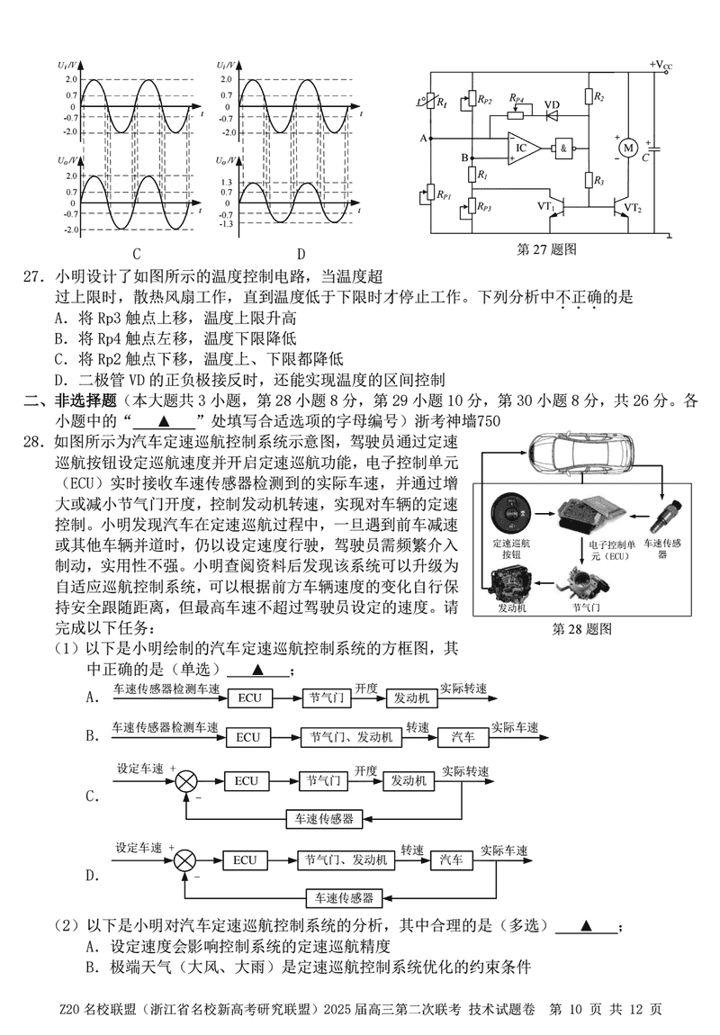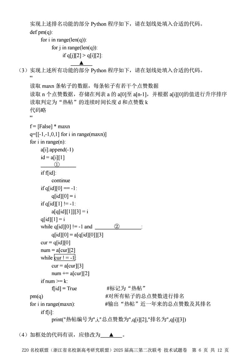 浙江Z20名校联盟2025届高三上学期第二次联考技术试题及答案