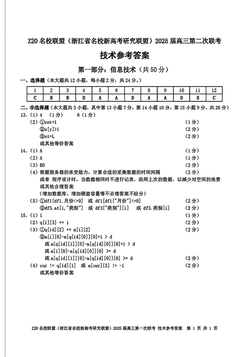 浙江Z20名校联盟2025届高三上学期第二次联考技术考试已于近日开考,为方便考生考后及时查看考试情况,查漏补缺、弥补不足,本文整理了试题答案解析相关信息!