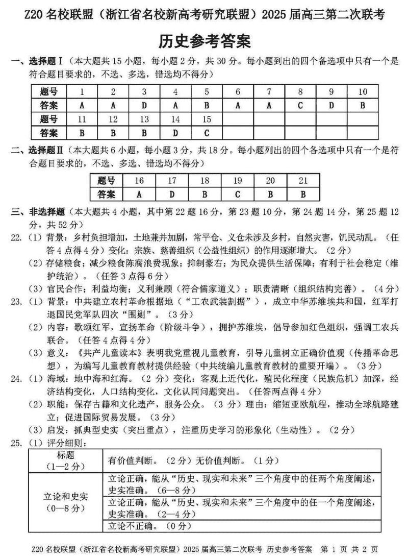 浙江Z20名校联盟2025届高三上学期第二次联考历史考试已于近日开考,为方便考生考后及时查看考试情况,查漏补缺、弥补不足,本文整理了试题答案解析相关信息!