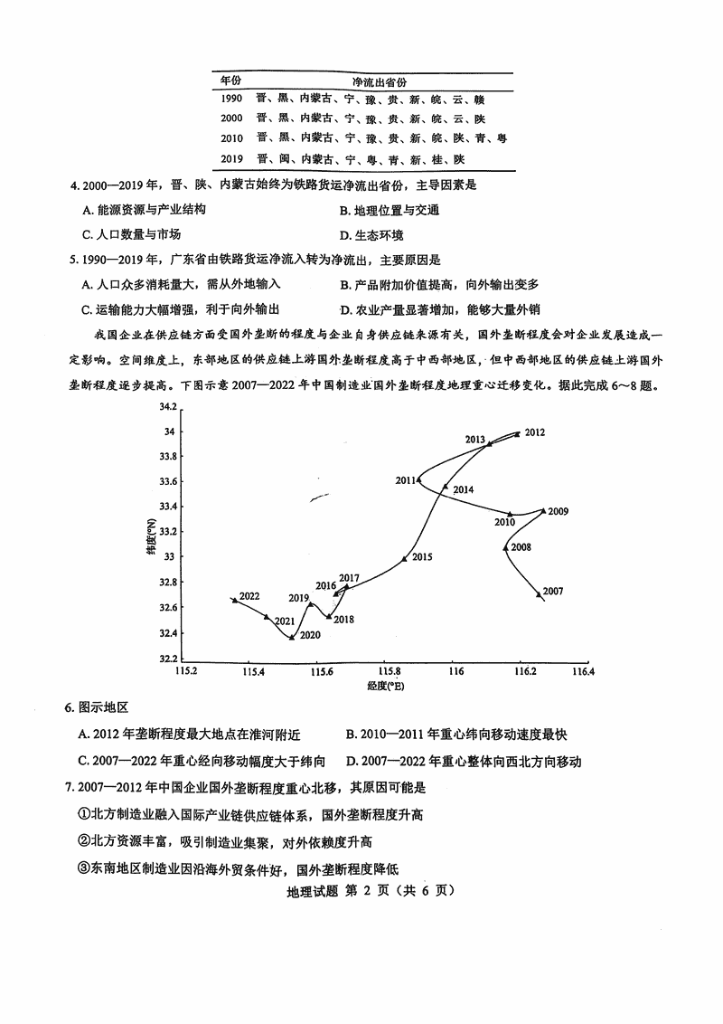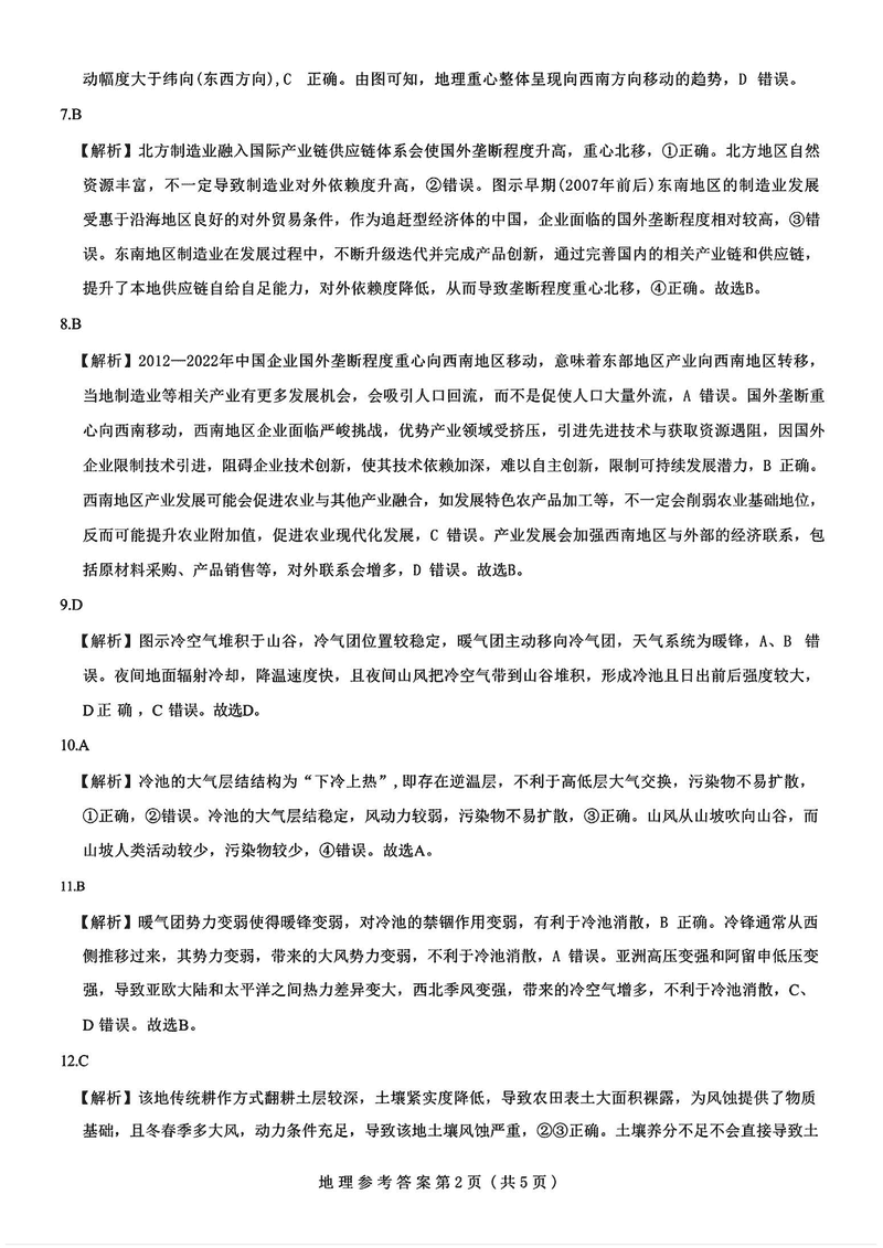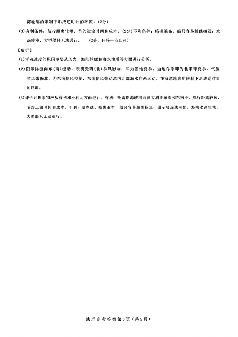 山西三重教育2025届高三12月适应性地理试题及答案