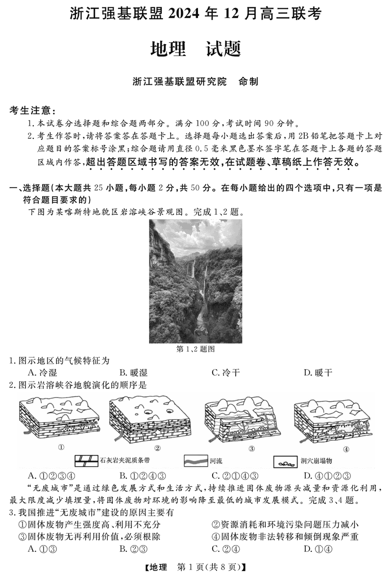 浙江省强基联盟2024年12月高三联考地理试题及答案 时间:2024-12-19 09:59 浙江 文综试题 浙江省强基联盟2024年12月高三联考地理考试已于近日开考,为方便考生考后及时查看考试情况,查漏补缺、弥补不足,本文整理了试题答案解析相关信息! 汇总:浙江省强基联盟2024年12月高三联考试题及答案汇总 地理试题及答案解析