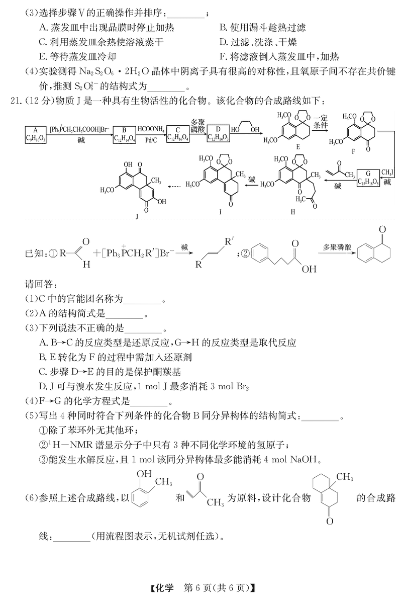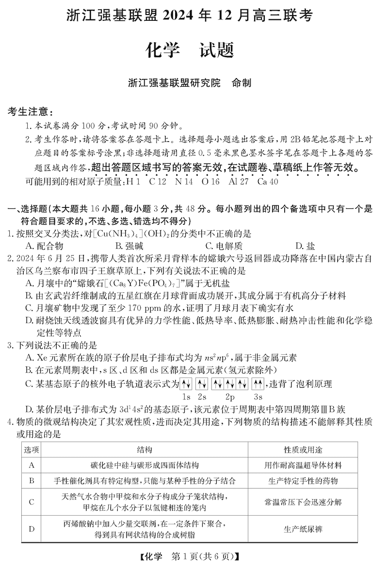 浙江省强基联盟2024年12月高三联考化学试题及答案 时间:2024-12-19 10:03 浙江 理综试题 浙江省强基联盟2024年12月高三联考化学考试已于近日开考,为方便考生考后及时查看考试情况,查漏补缺、弥补不足,本文整理了试题答案解析相关信息! 汇总:浙江省强基联盟2024年12月高三联考试题及答案汇总 化学试题及答案解析