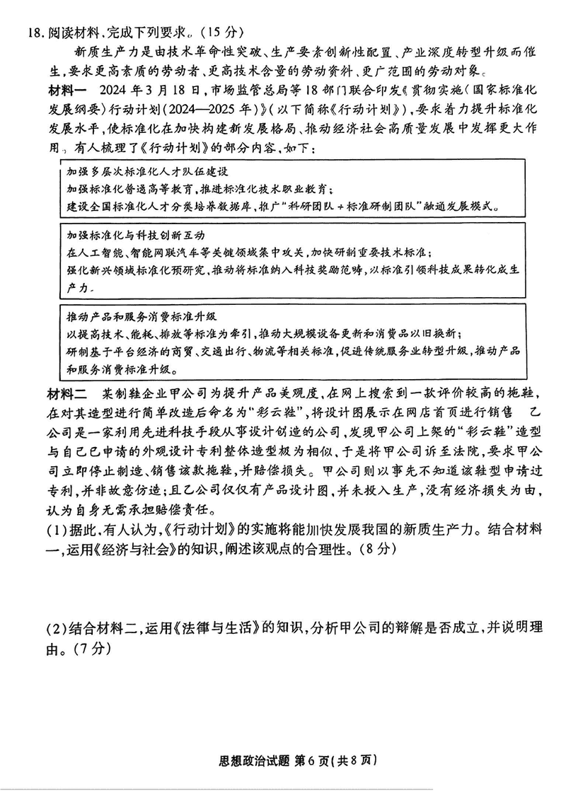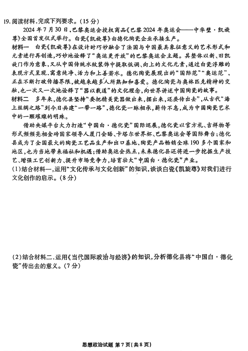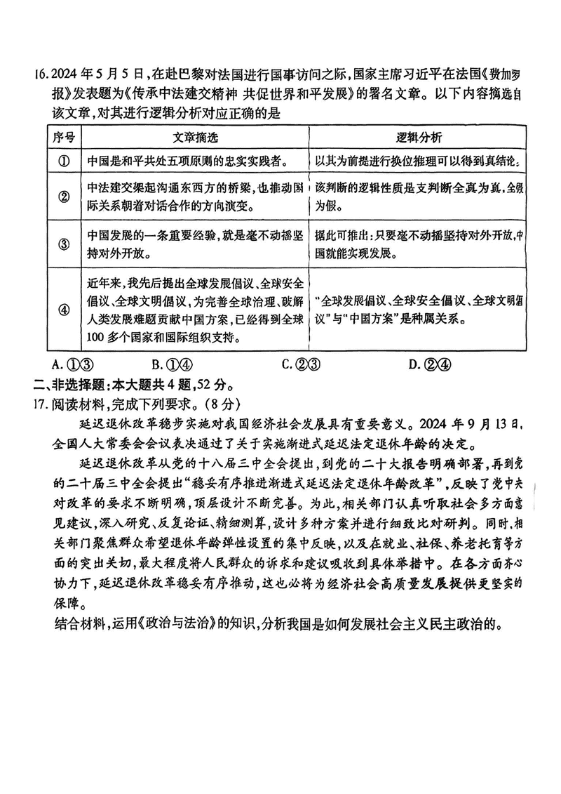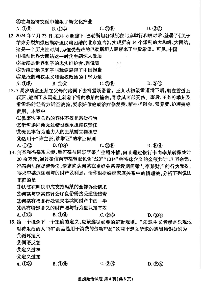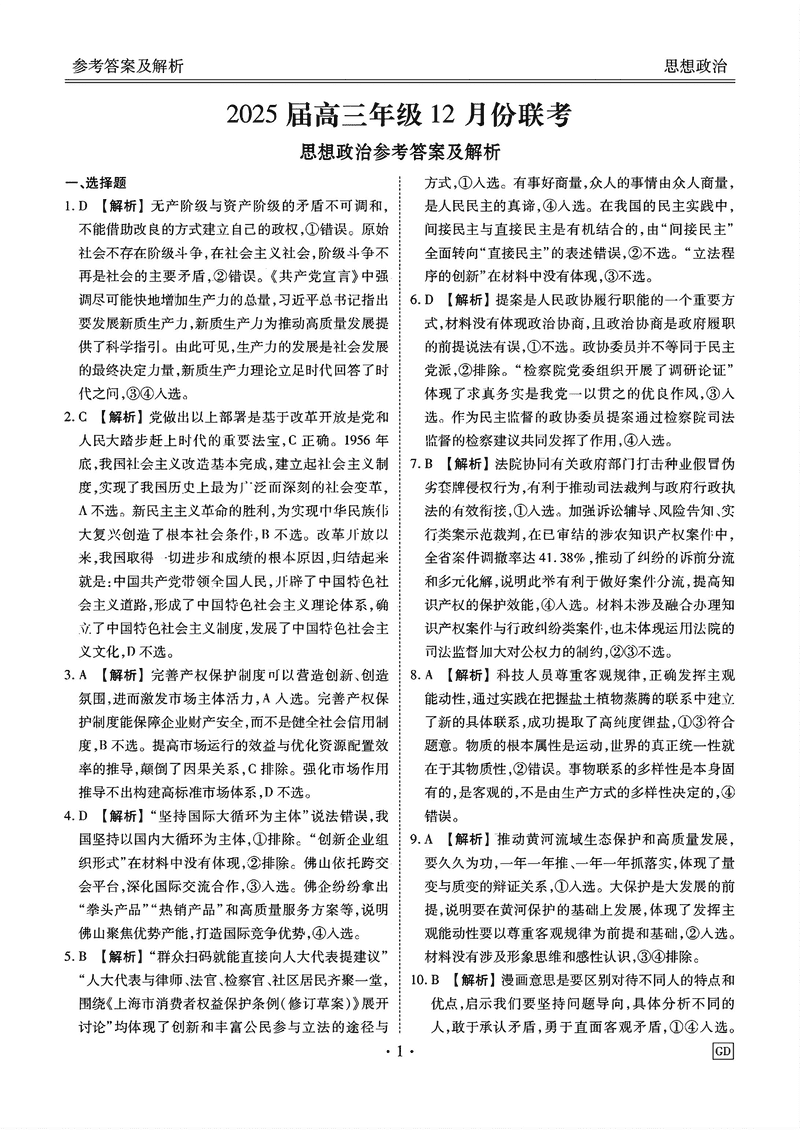 广东衡水金卷2025届高三上学期12月联考政治试题及答案