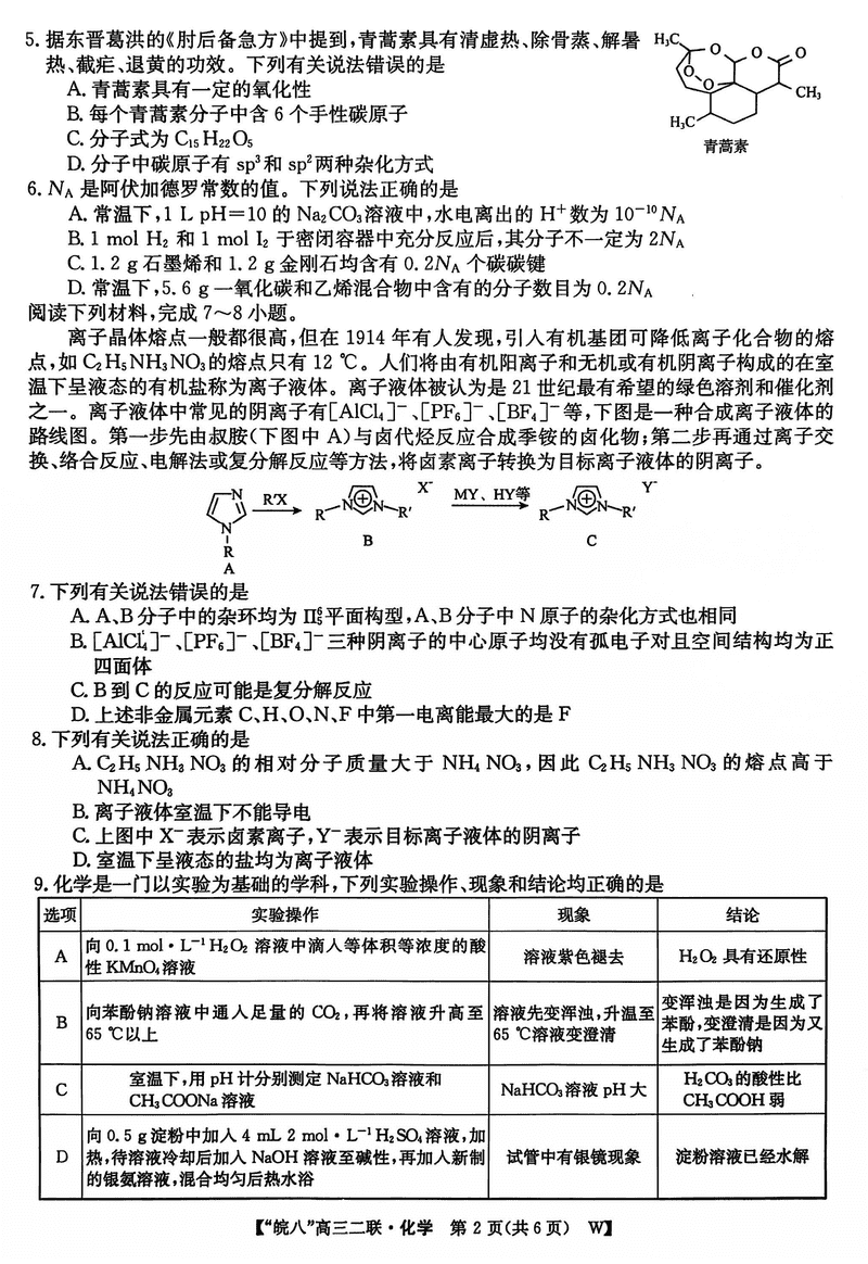 皖南八校2025届高三上学期第二次大联考化学考试已于近日开考,为方便考生考后及时查看考试情况,查漏补缺、弥补不足,本文整理了试题答案解析相关信息!