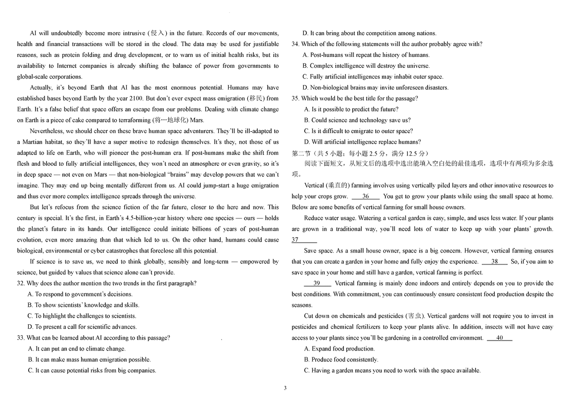 东北师大附中2025届高三上学期第三次模考英语试题及答案