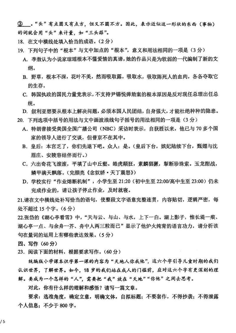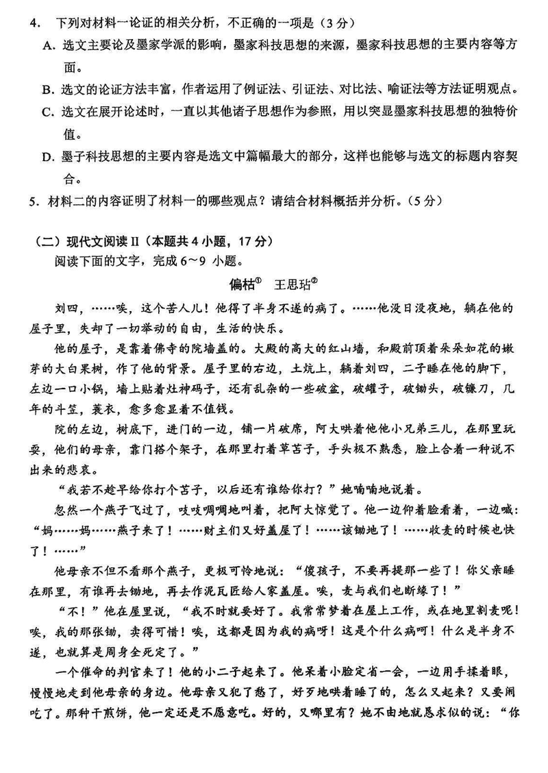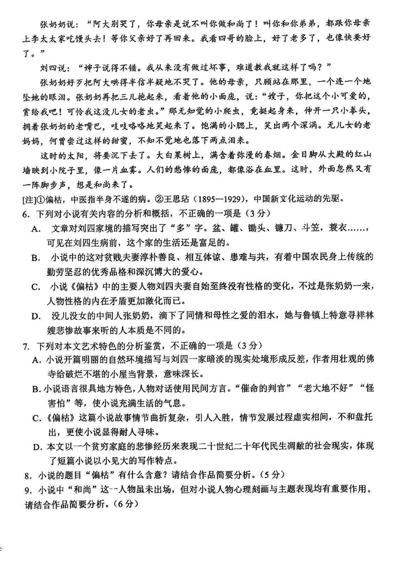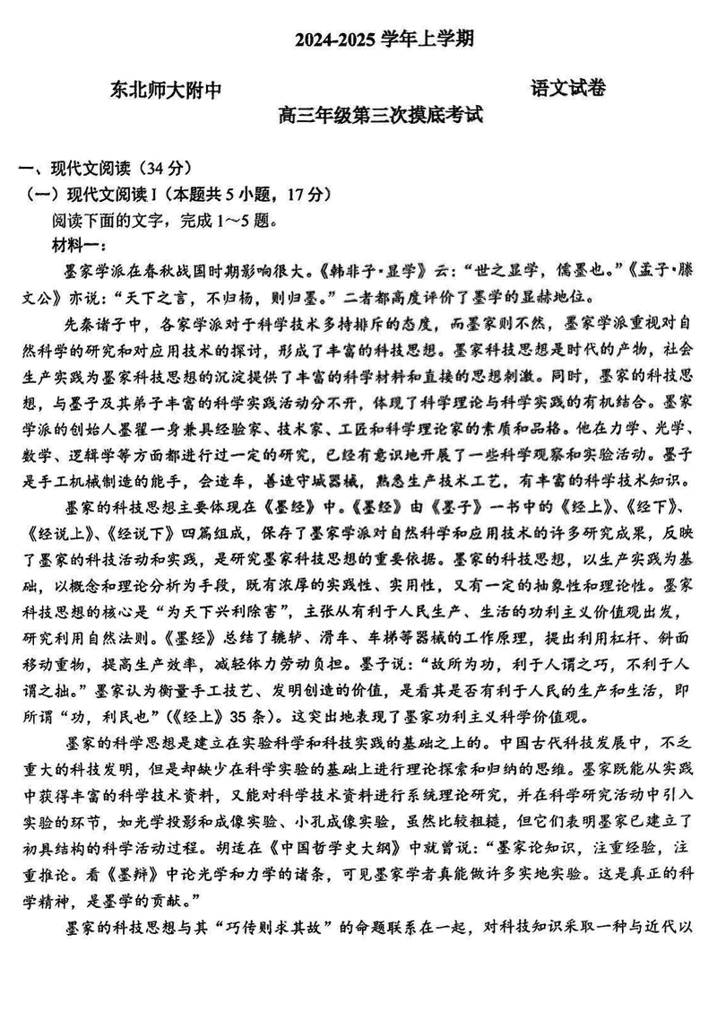 东北师大附中2025届高三上学期第三次模考语文试题及答案