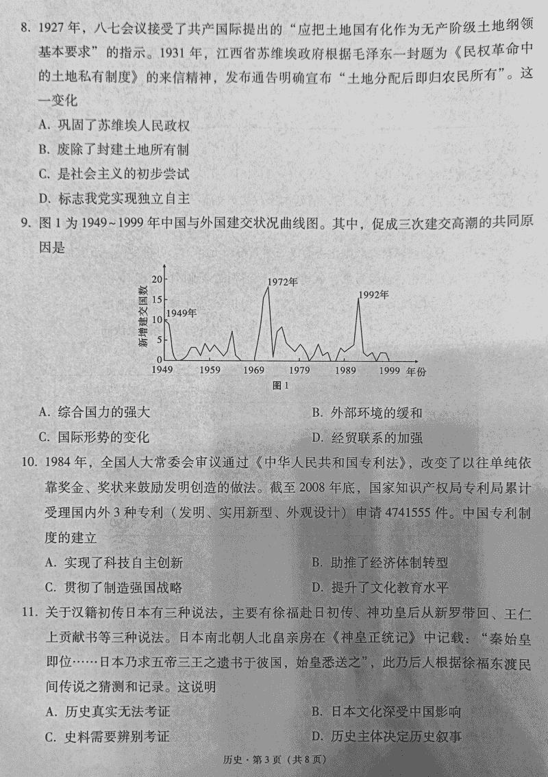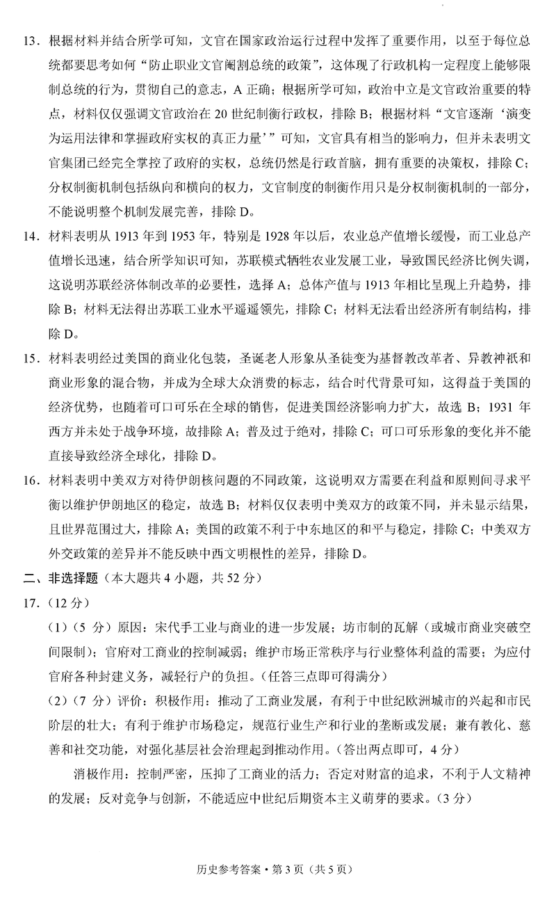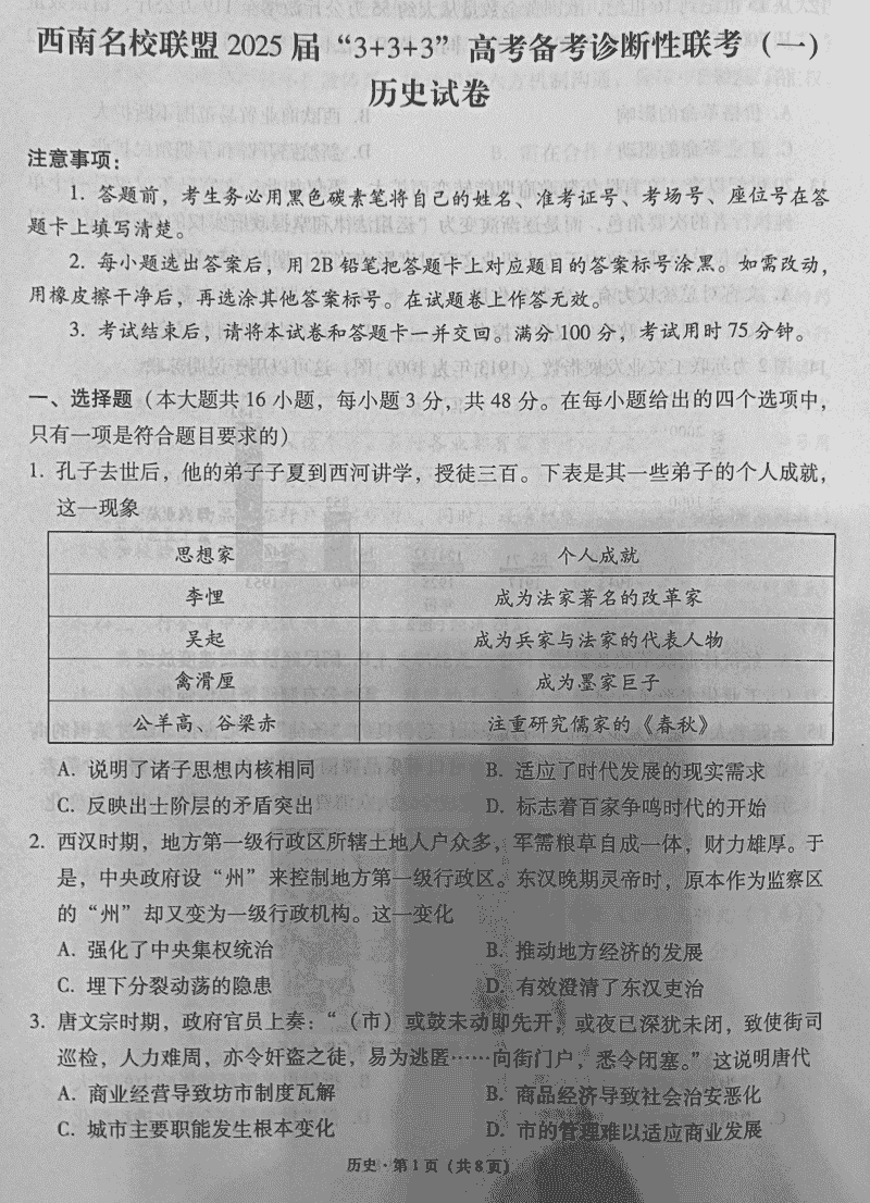 西南名校联盟2025届高三3+3+3诊断性联考(一)历史试题及答案
