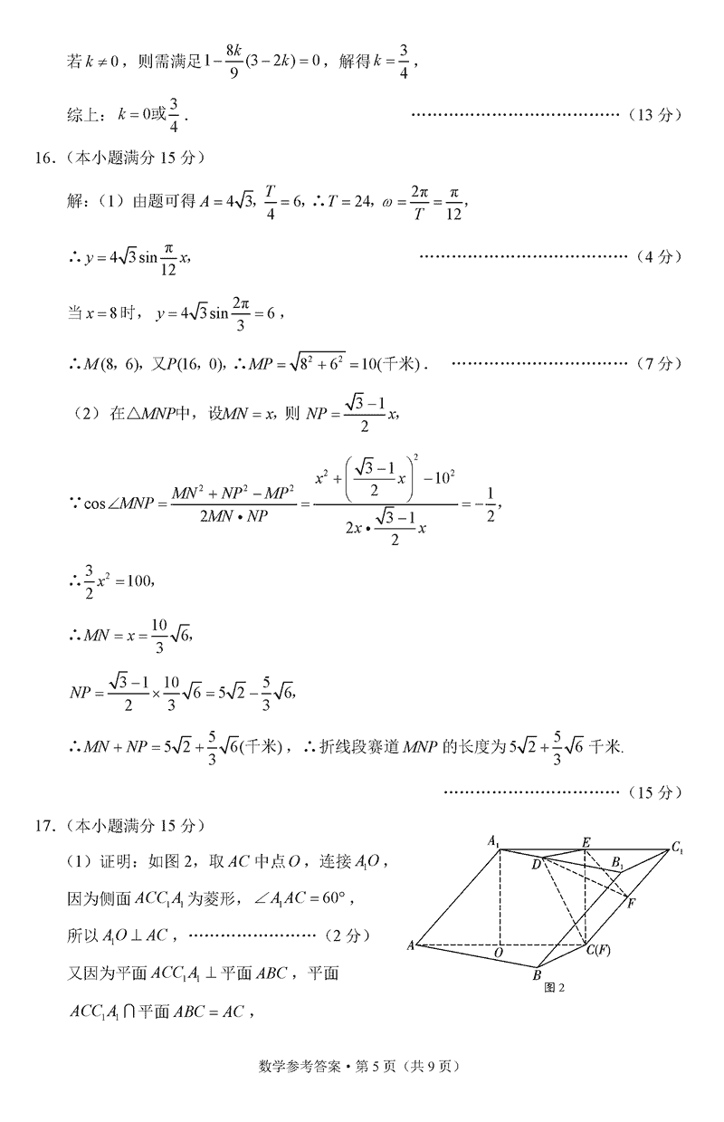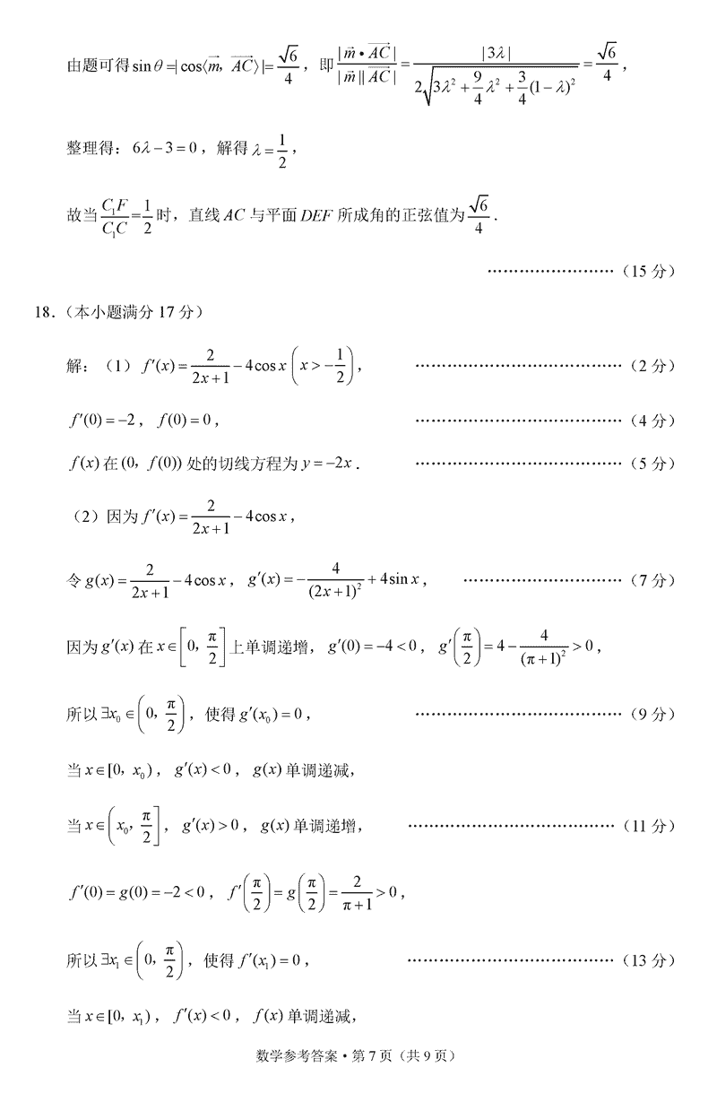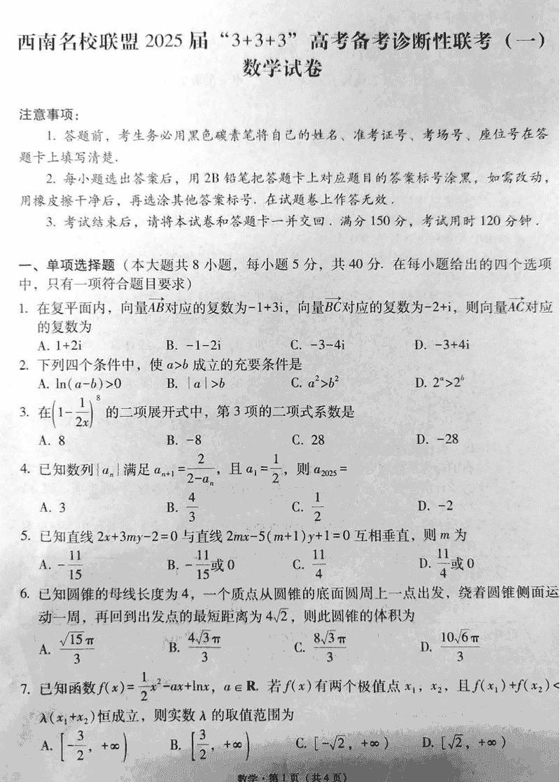西南名校联盟2025届高三3+3+3诊断性联考(一)数学试题及答案