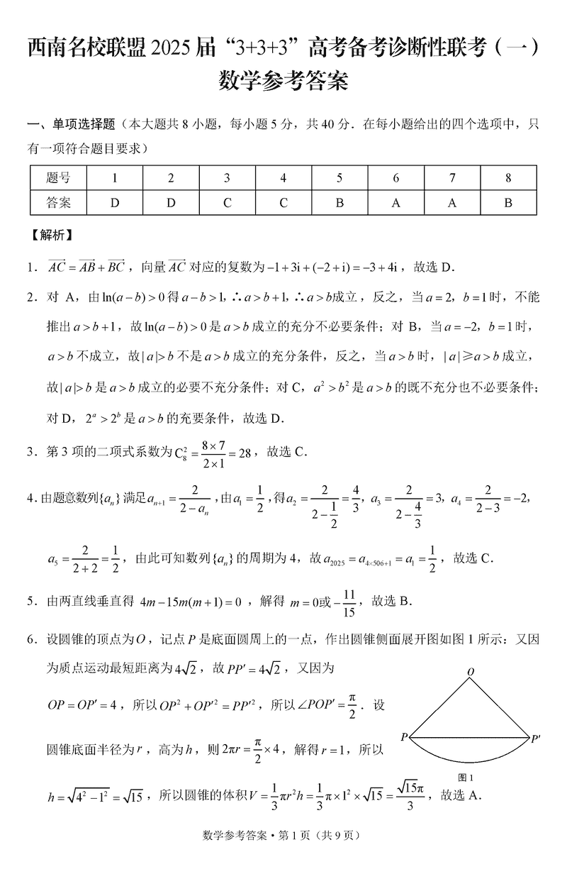 西南名校联盟2025届高三3+3+3诊断性联考(一)数学考试已于近日开考,为方便考生考后及时查看考试情况,查漏补缺、弥补不足,本文整理了试题答案解析相关信息!