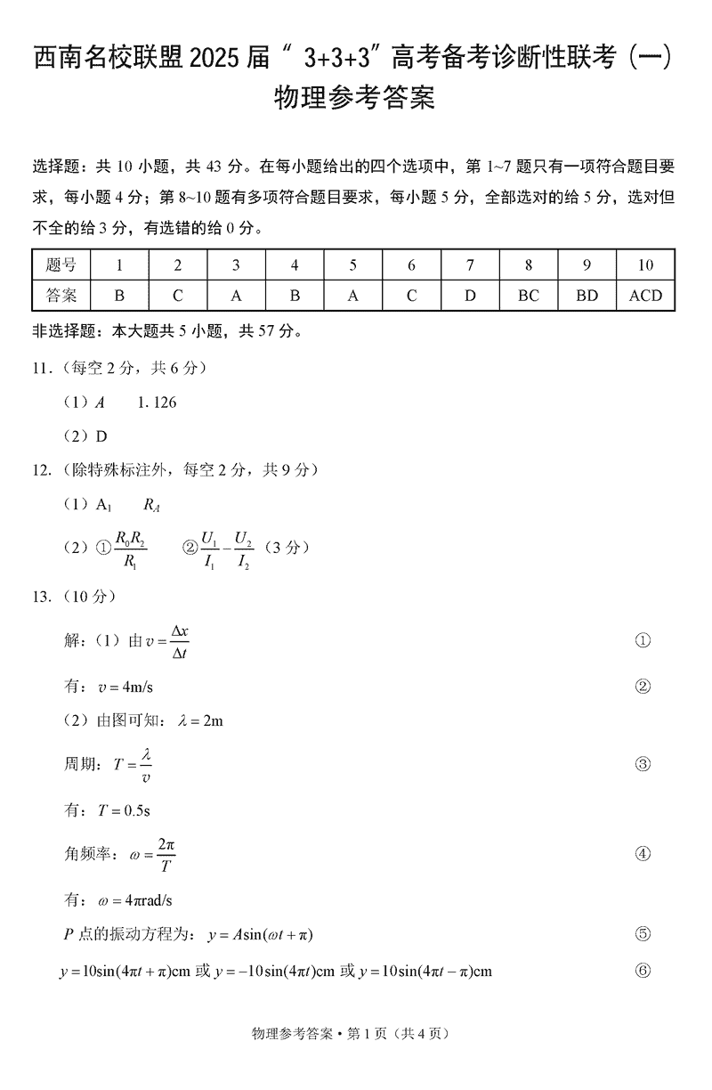 西南名校联盟2025届高三3+3+3诊断性联考(一)物理考试已于近日开考,为方便考生考后及时查看考试情况,查漏补缺、弥补不足,本文整理了试题答案解析相关信息!